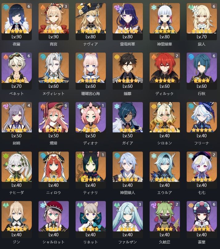 下記のようなキャラクター・武器を所持しております。(一部抜粋)