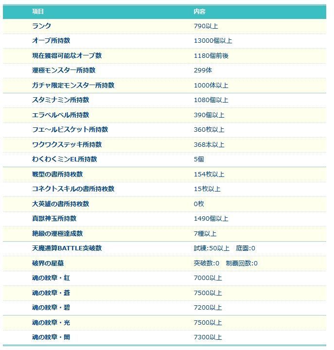 アカウント特定防止といった観点から、主なモンスターを抜粋して記載させていただいております。