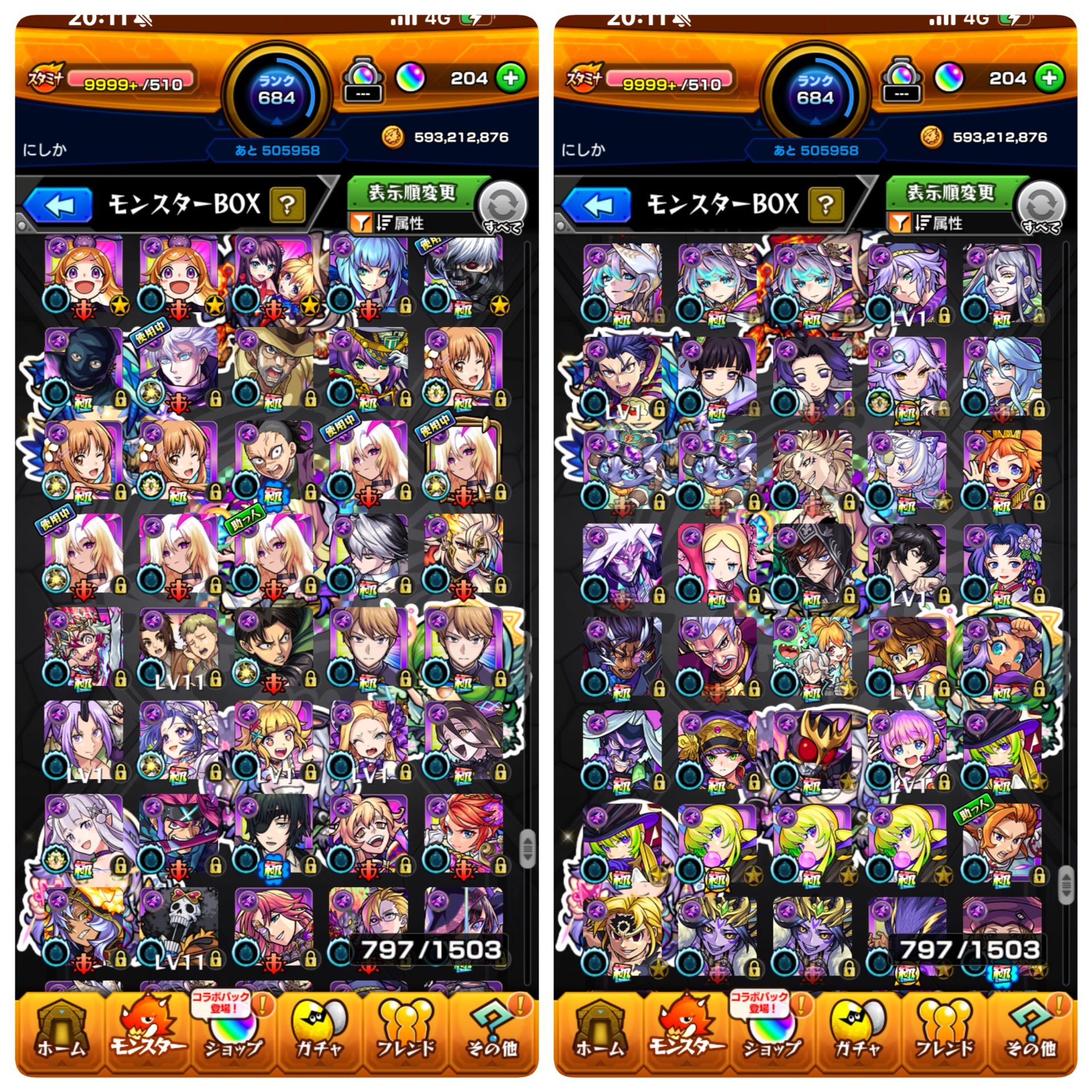 ガチャ限キャラ802体