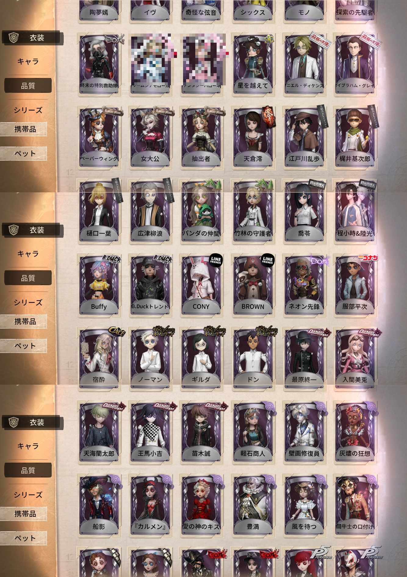 アカウント特定防止といった観点から、主な衣装を抜粋して記載させていただいております。