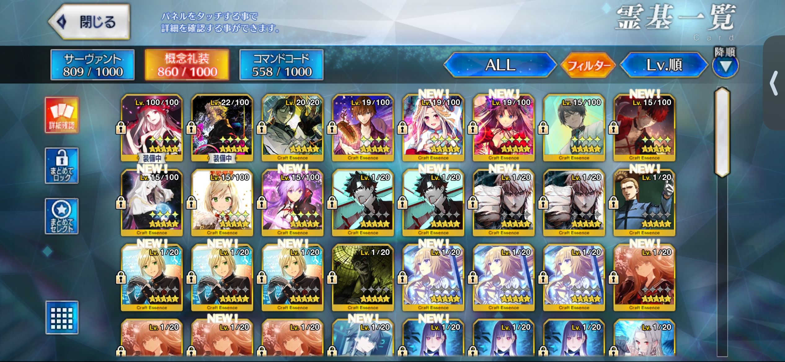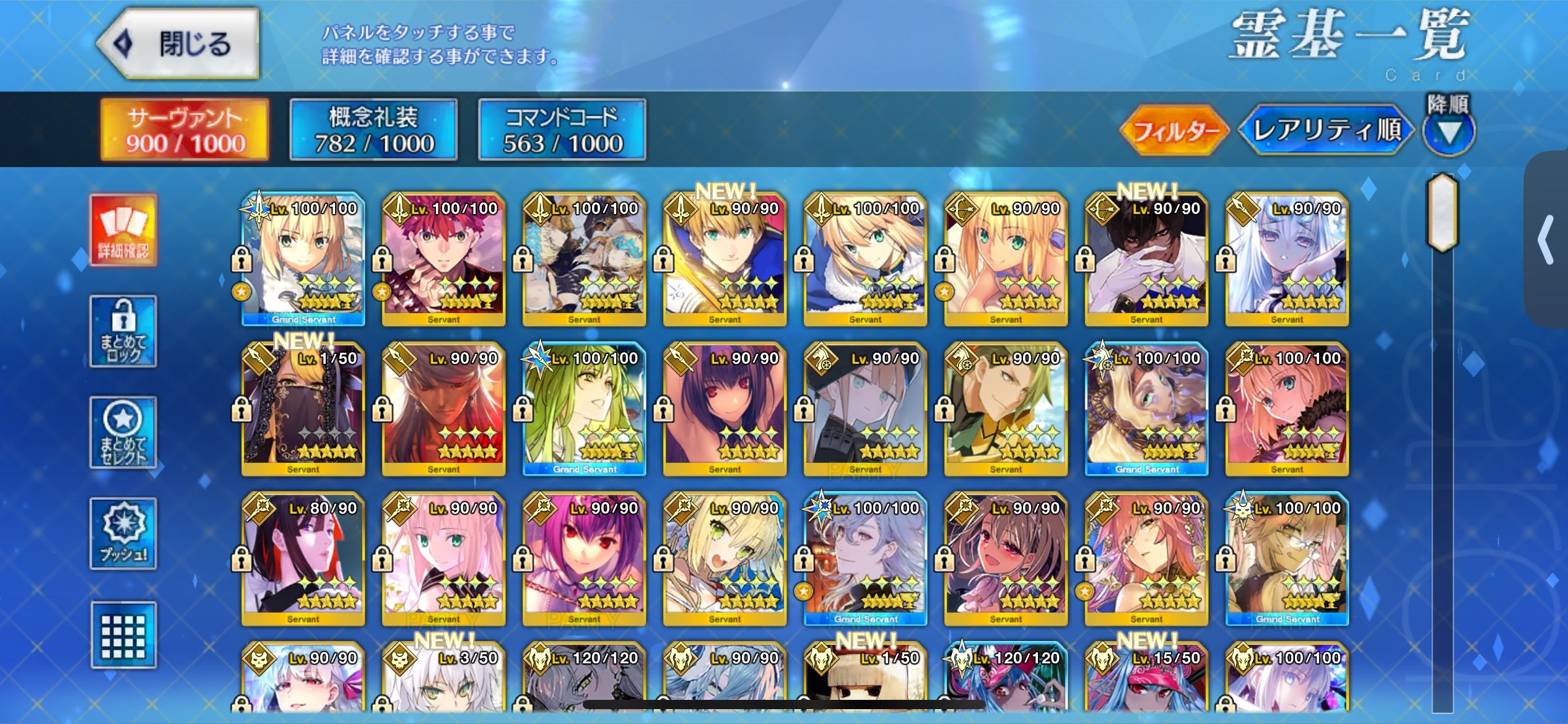特筆ポイント:プレイするに当たって困ることはないぐらいのキャラは揃っています。グランドスコアはEX1.2とバーサーカー、セイバーは解放済み