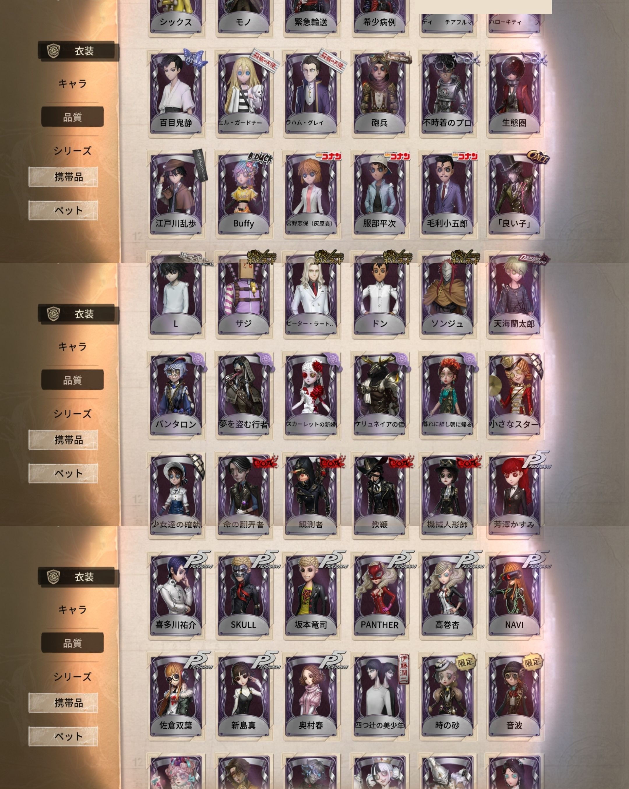 アカウント特定防止といった観点から、主な衣装を抜粋して記載させていただいております。
