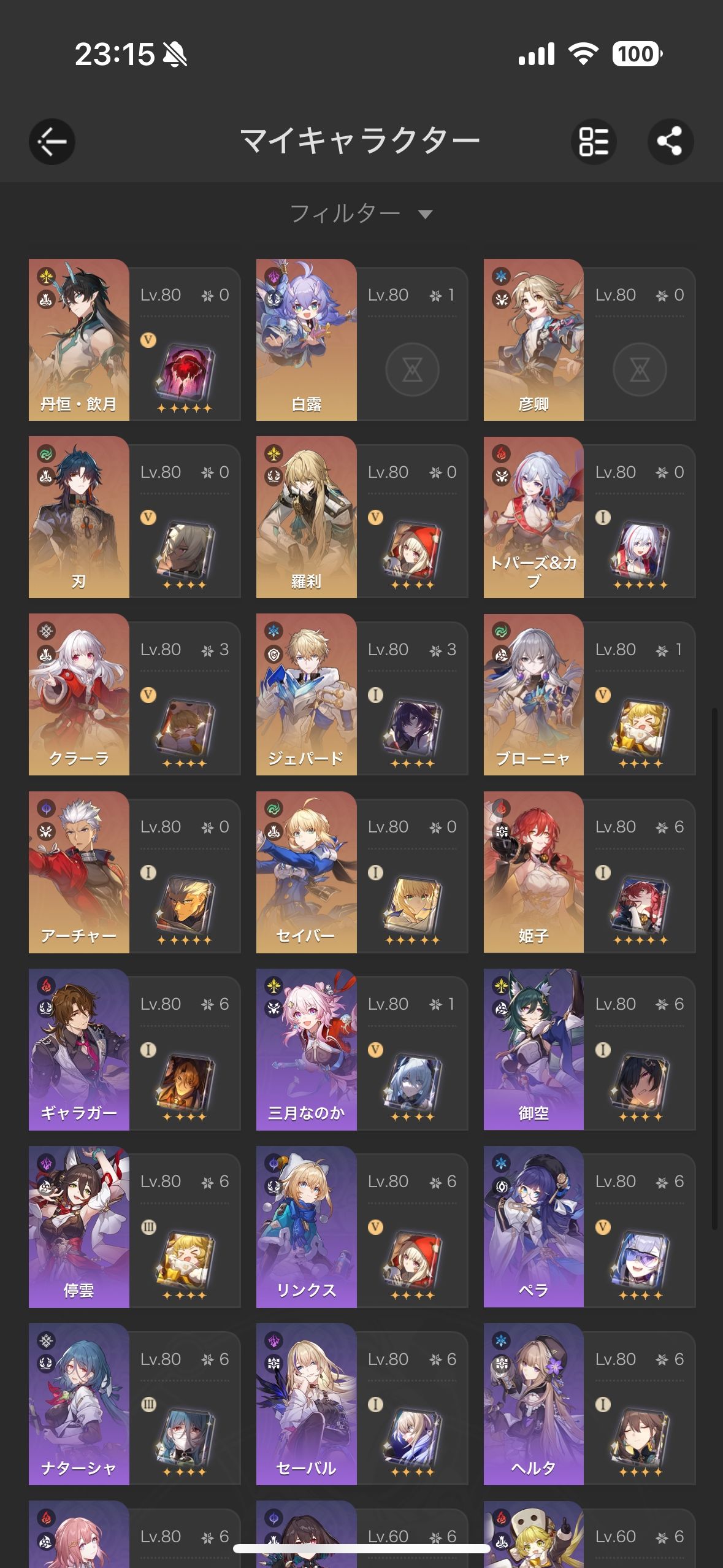 開拓レベル70、リリース1週間目くらいから始めました。ピノコニー以降ログインもおぼつかないので売ろうと思います。