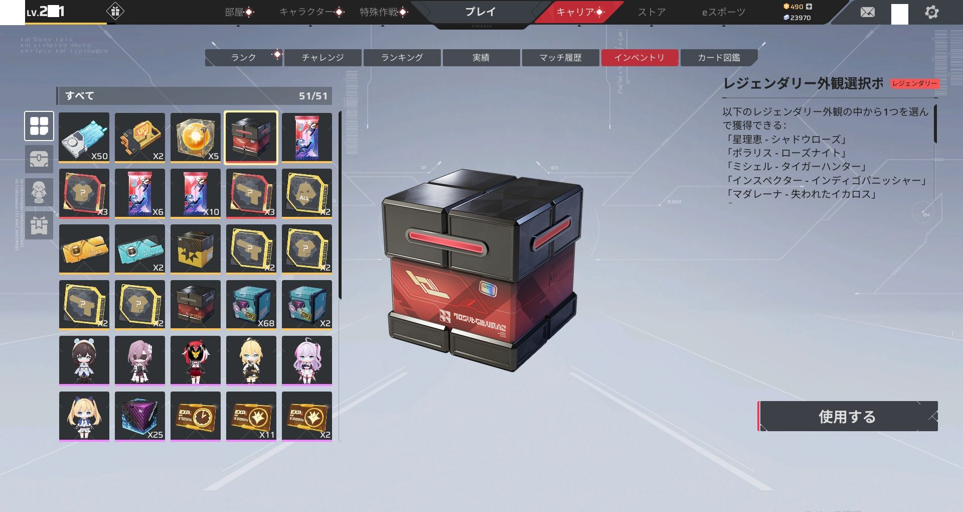 メモリシーケンス(ガチャチケット)、レジェンダリーとエピックのアイテムなど多数