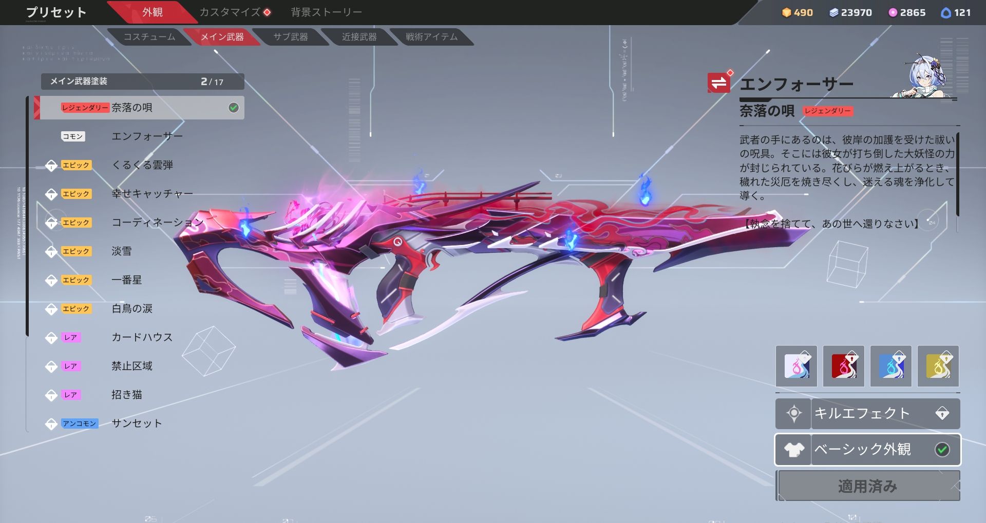 レジェンダリー武器塗装からひとつ選択し入手可能