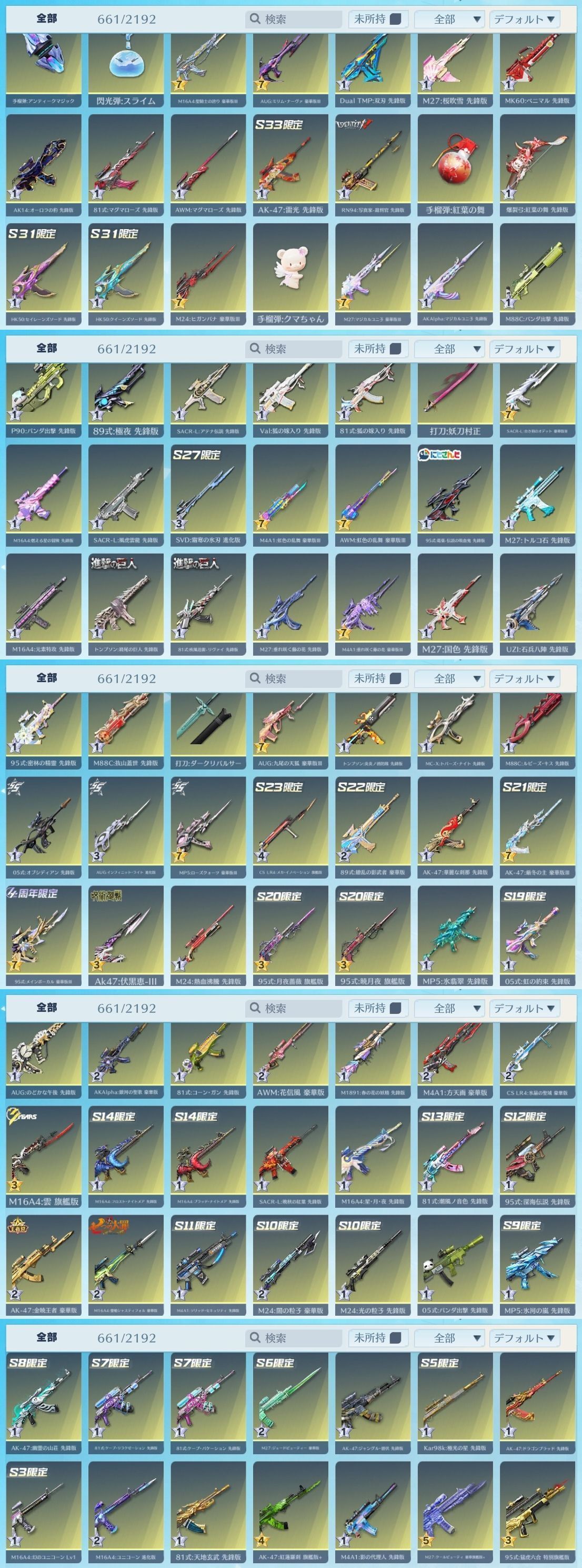 アカウント特定防止といった観点から主なスキンを抜粋して掲載しております。