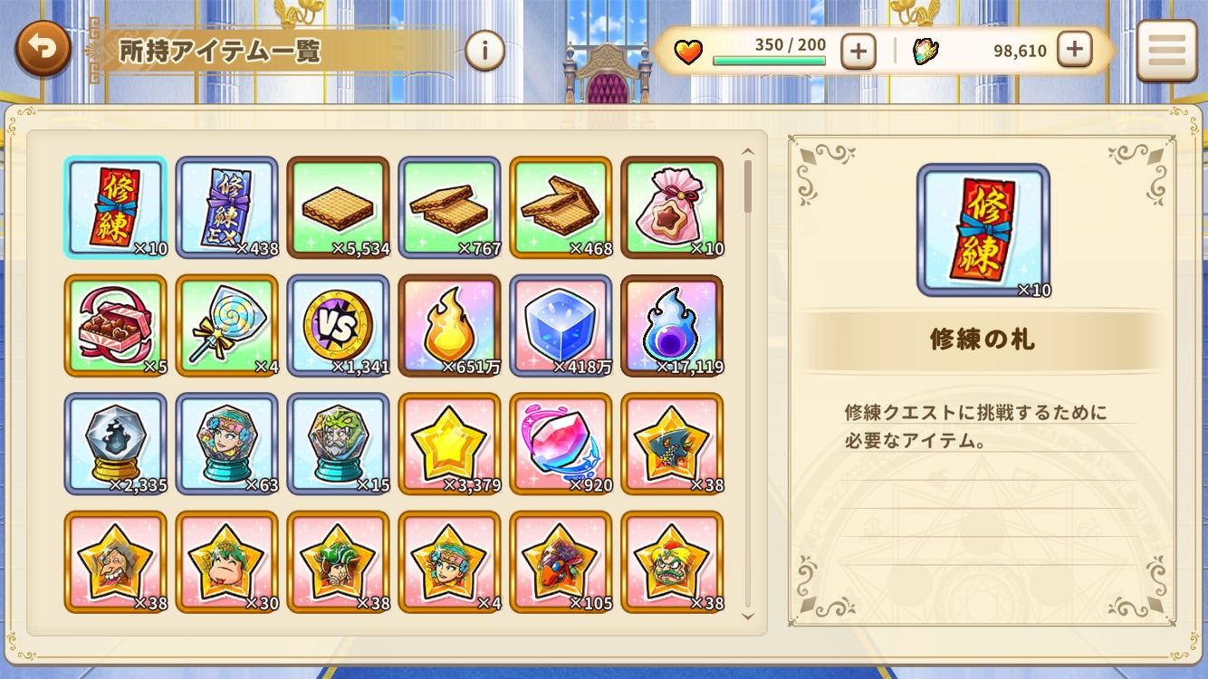 チョコやシャインスター、気力、プリズムも