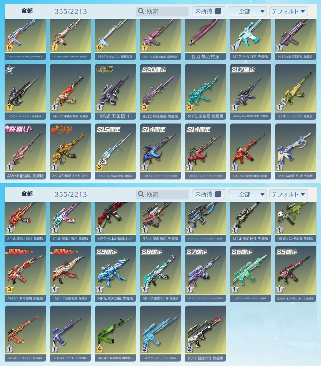 心を燃やせ 煉獄杏寿郎 EVセダン:隻眼 世界:双生の闇光 レイ&アスカVer. AK-47:現代最強の呪術師・五条悟 95式:隻眼 M16A4:氷雪の炎竜 M16A4:マーメイドファンタジア M4A4:心を燃やせ 煉獄杏寿郎