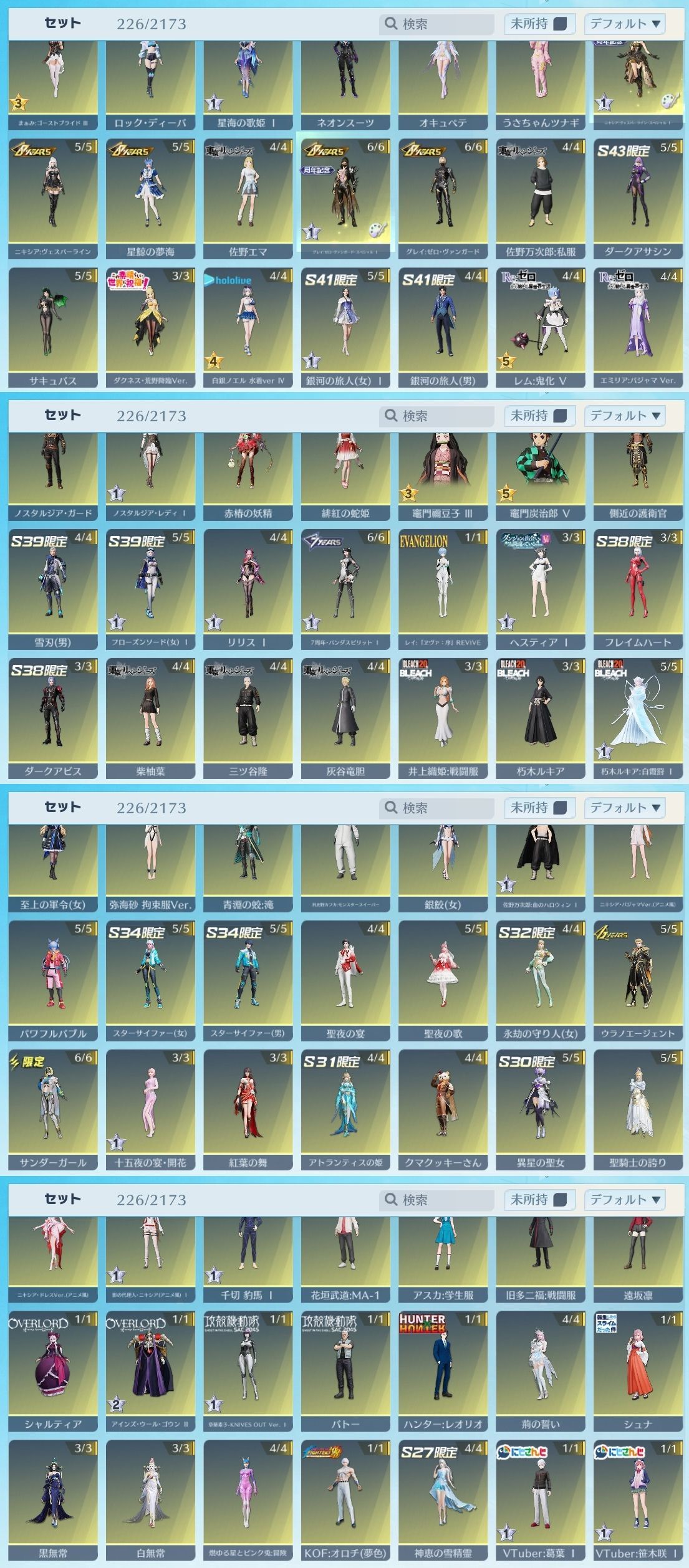 アカウント特定防止といった観点から主なスキンを抜粋して掲載しております。