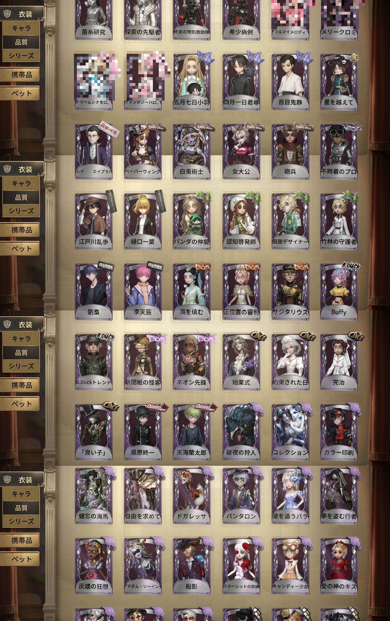 アカウント特定防止といった観点から、主な衣装を抜粋して記載させていただいております。