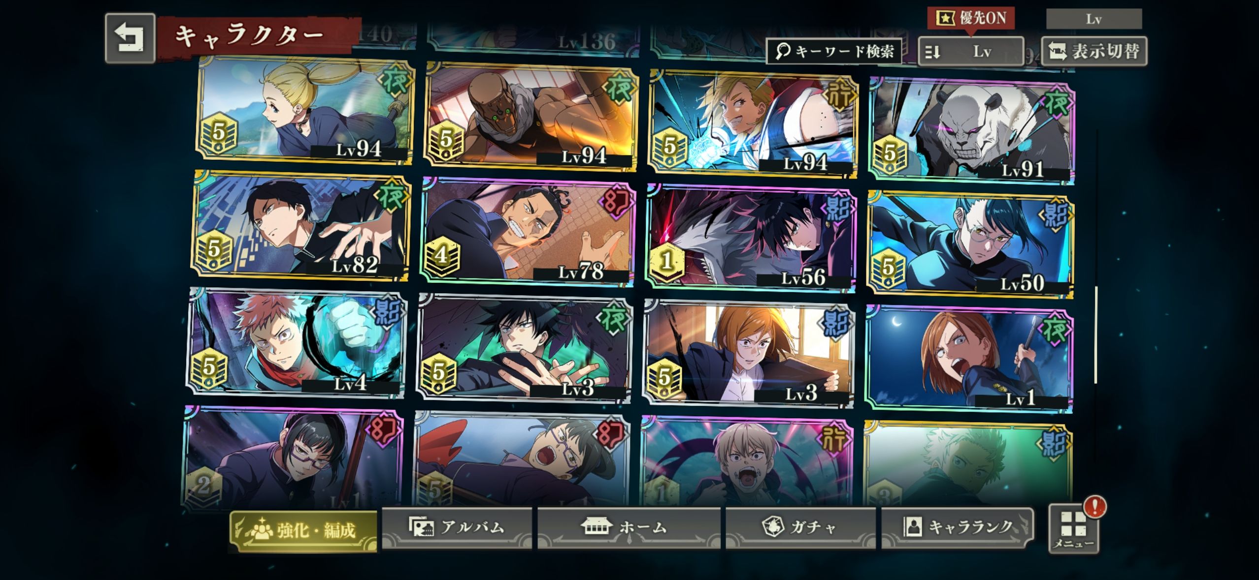 特筆ポイント:行五条完凸 影乙骨4凸 ガチャポイントカード260枚