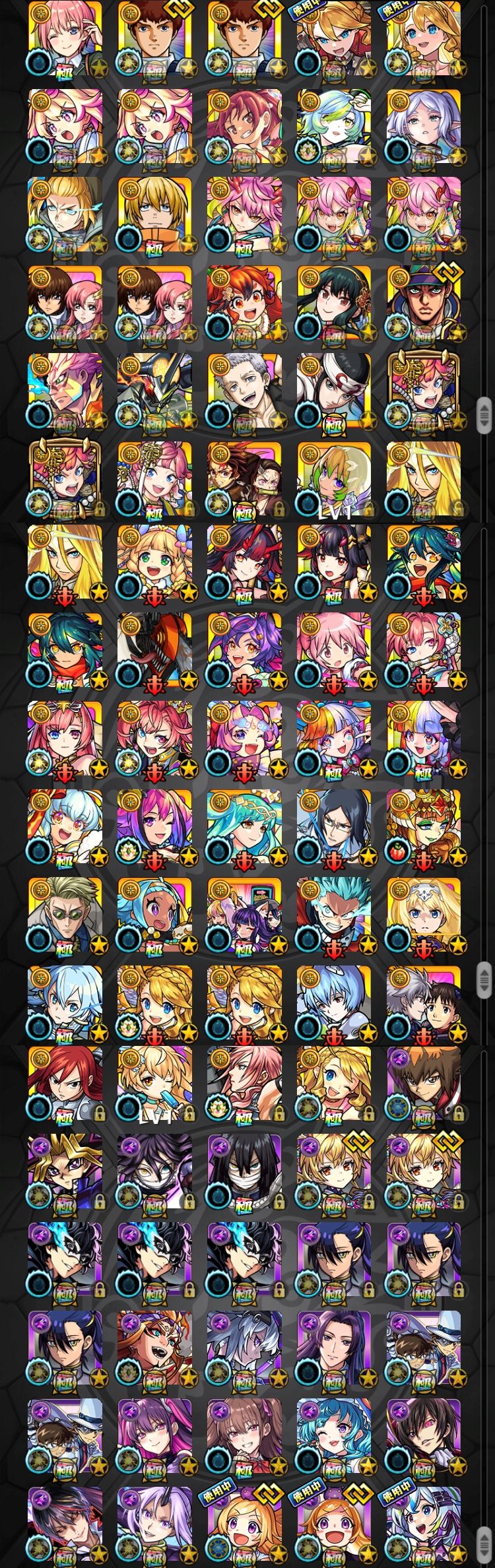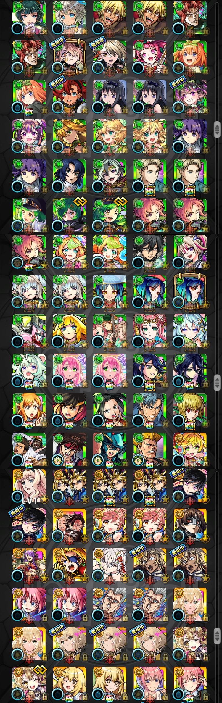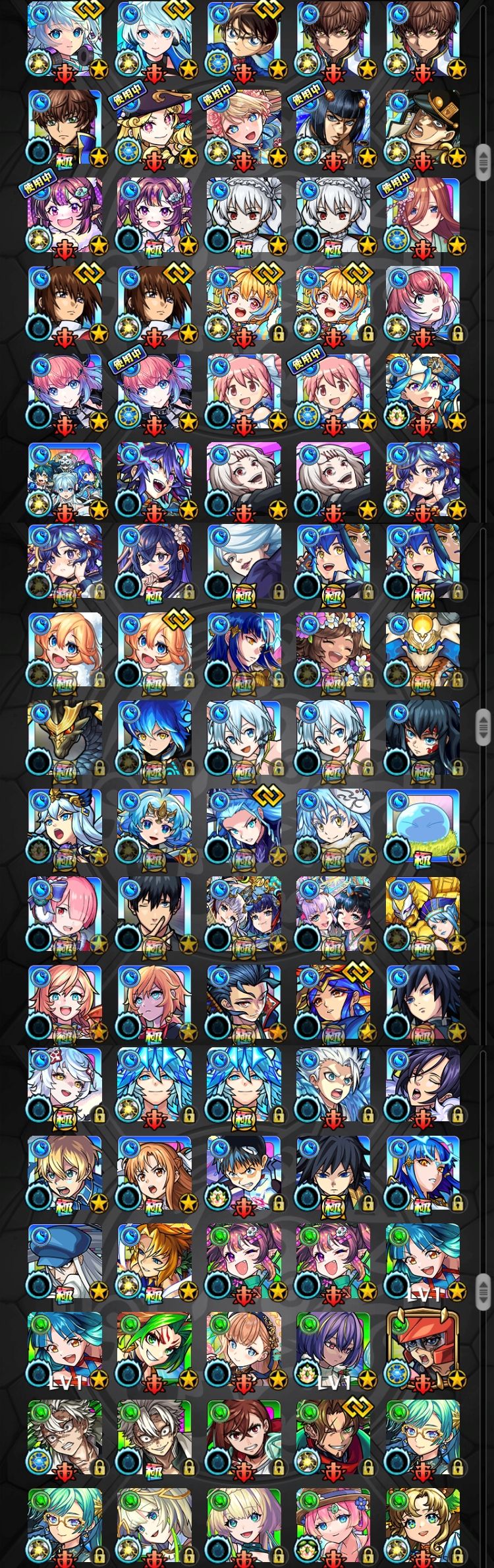 アカウント特定防止といった観点から、主なモンスターを抜粋して記載させていただいております。