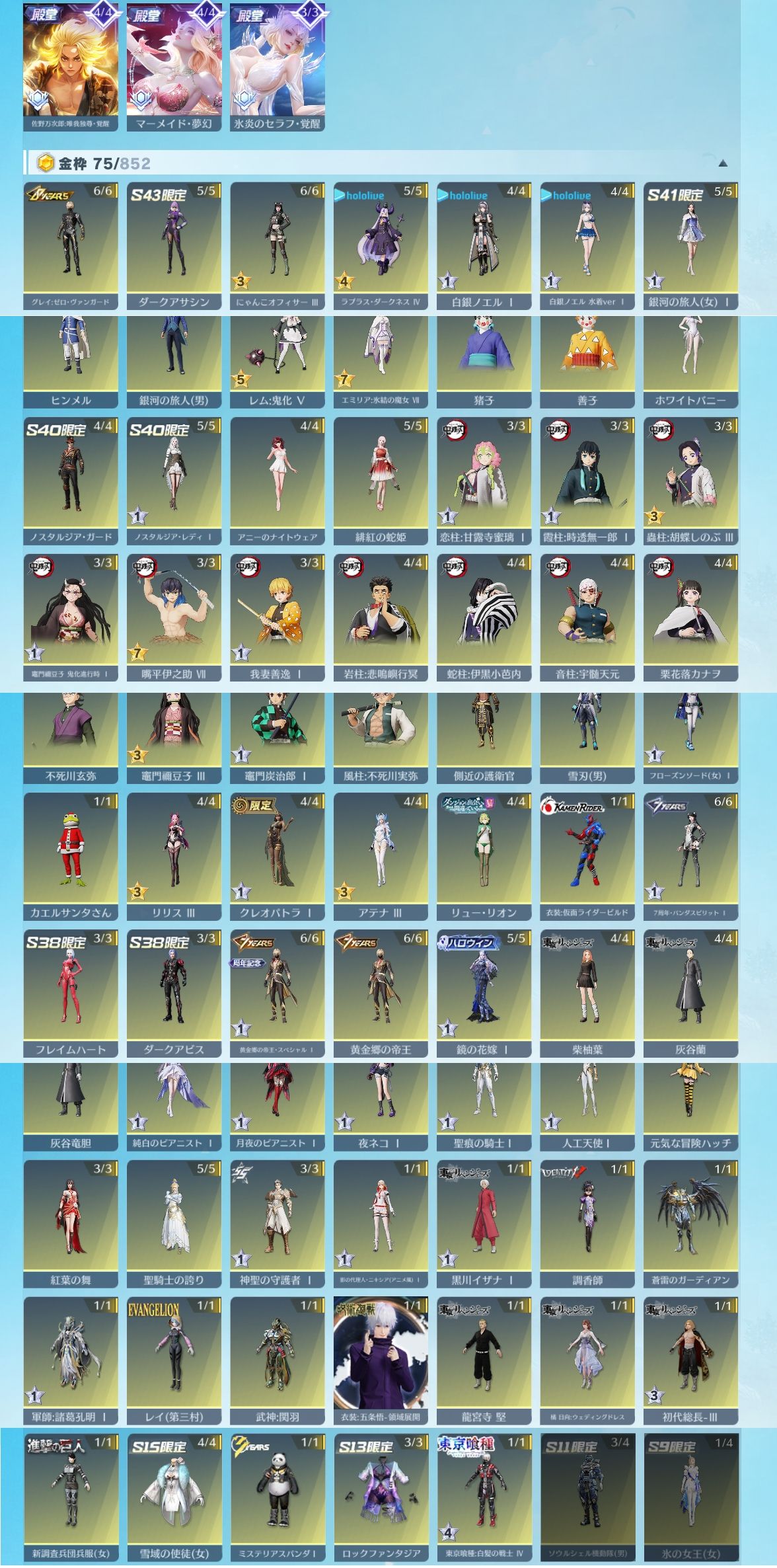 アカウント特定防止といった観点から主なスキンを抜粋して掲載しております。