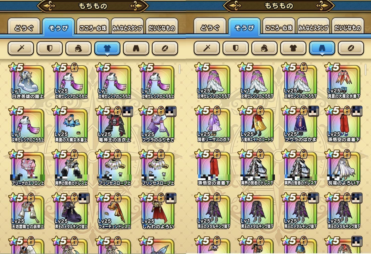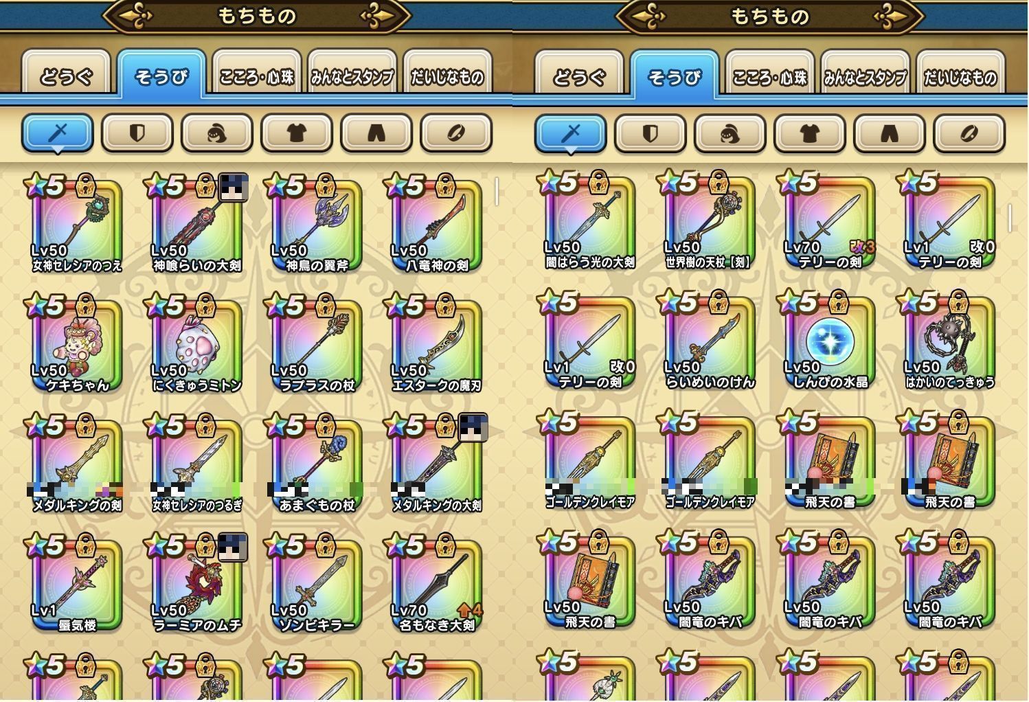下記のようなそうびを所持しております。(一部抜粋)