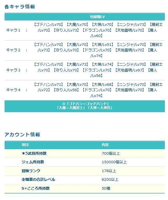 ※冒険ランクなども一部ぼかして記載しています。