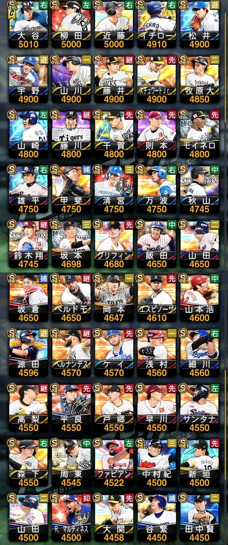マルティネス イチロー エスピノーザ 大谷翔平(野手) 大谷翔平(投手) 岡本和真 近藤健介 坂本勇人 中村紀洋 細川成也