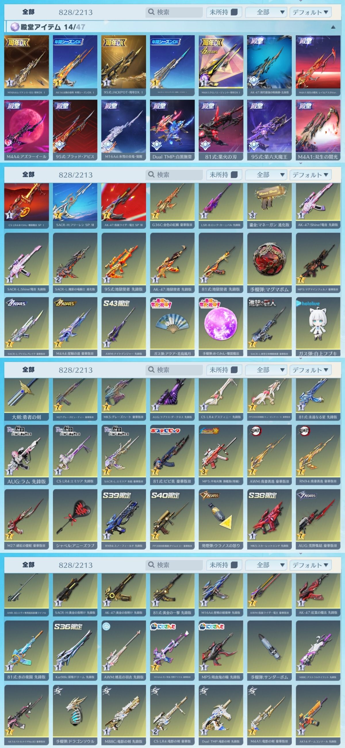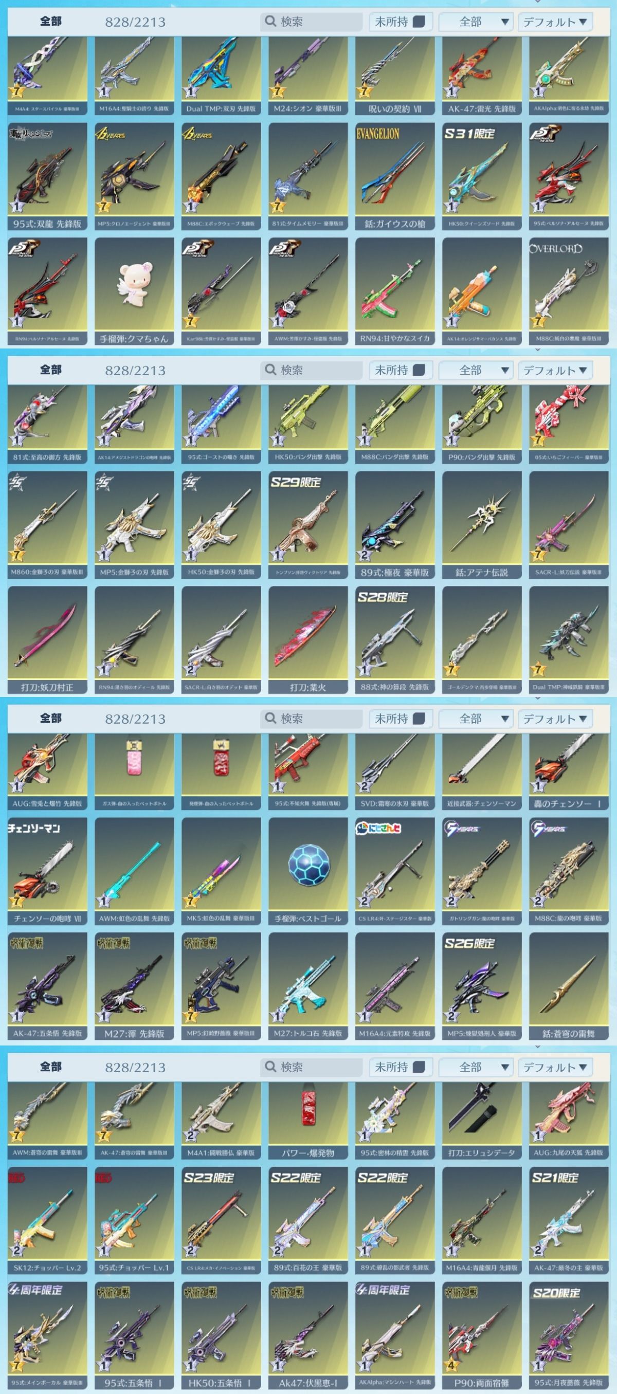 光輪RK01(枕) 現代最強の呪術師・五条悟 涅槃:氷炎のセラフ ダークマシン:ブラッド・アビス 世界:双生の賛歌 世界:双生の闇光 M4A1:双生の闇光 レイ&アスカVer. M4A1:クロノエージェント M4A1:双生の闇光 SACR-L:リキバノダンガン AK-47:現代最強の呪術師・五条悟 AK14:太陽の息吹 95式:JACKPOT 95式:ブラッド・アビス 95式:第六天魔王 M16A4:氷雪の炎竜 M16A4:レゾナンス・ゼロ 周年DX 81式:業火の刃 Dual TMP:白黒無常 M4A4:アズラーイール 五条悟:無下限呪術の使い手 現代最強の呪術師・五条悟