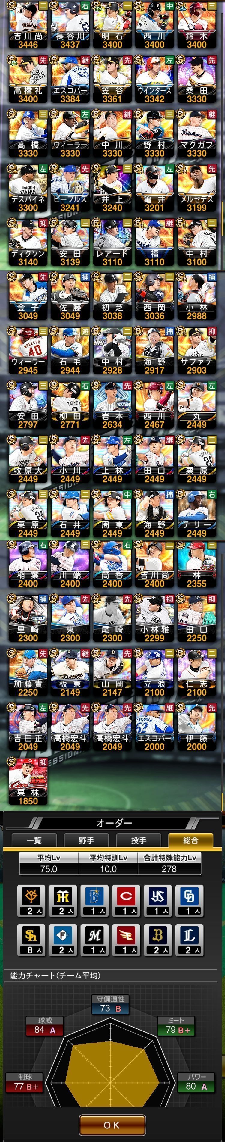アカウント特定防止といった観点から、主な選手を抜粋して記載させていただいております。
