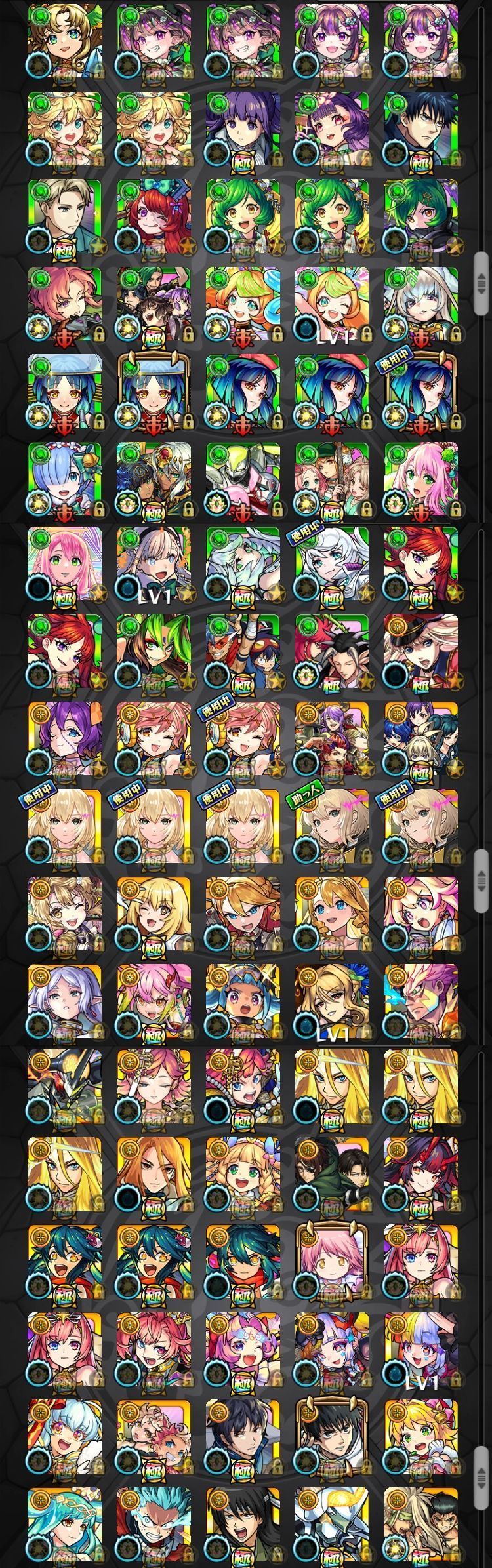 アカウント特定防止といった観点から、主なモンスターを抜粋して記載させていただいております。