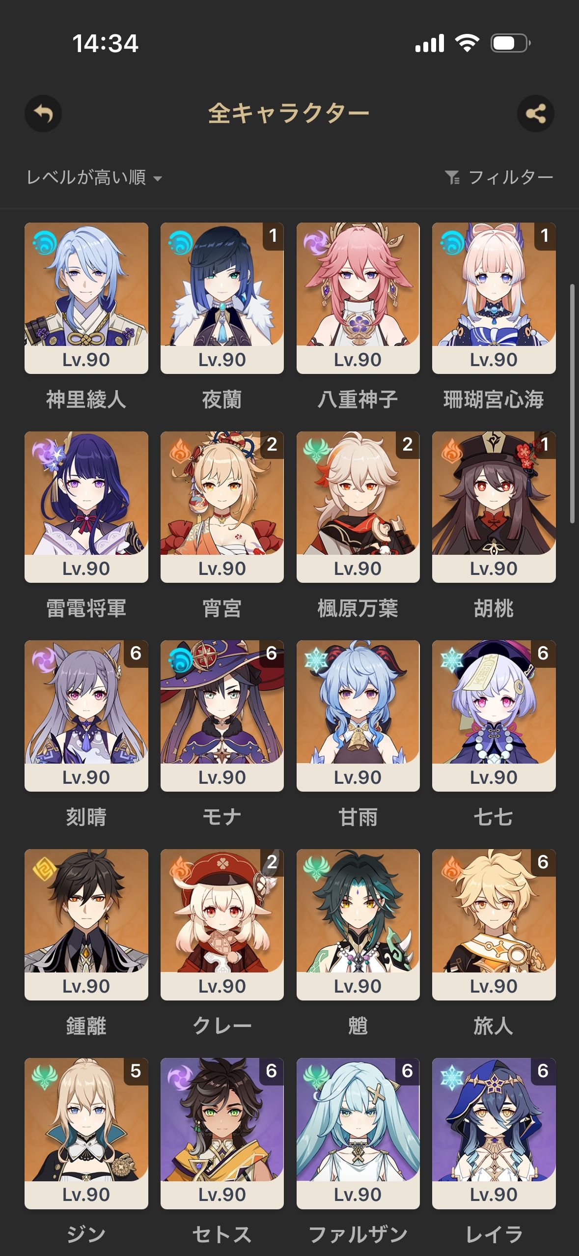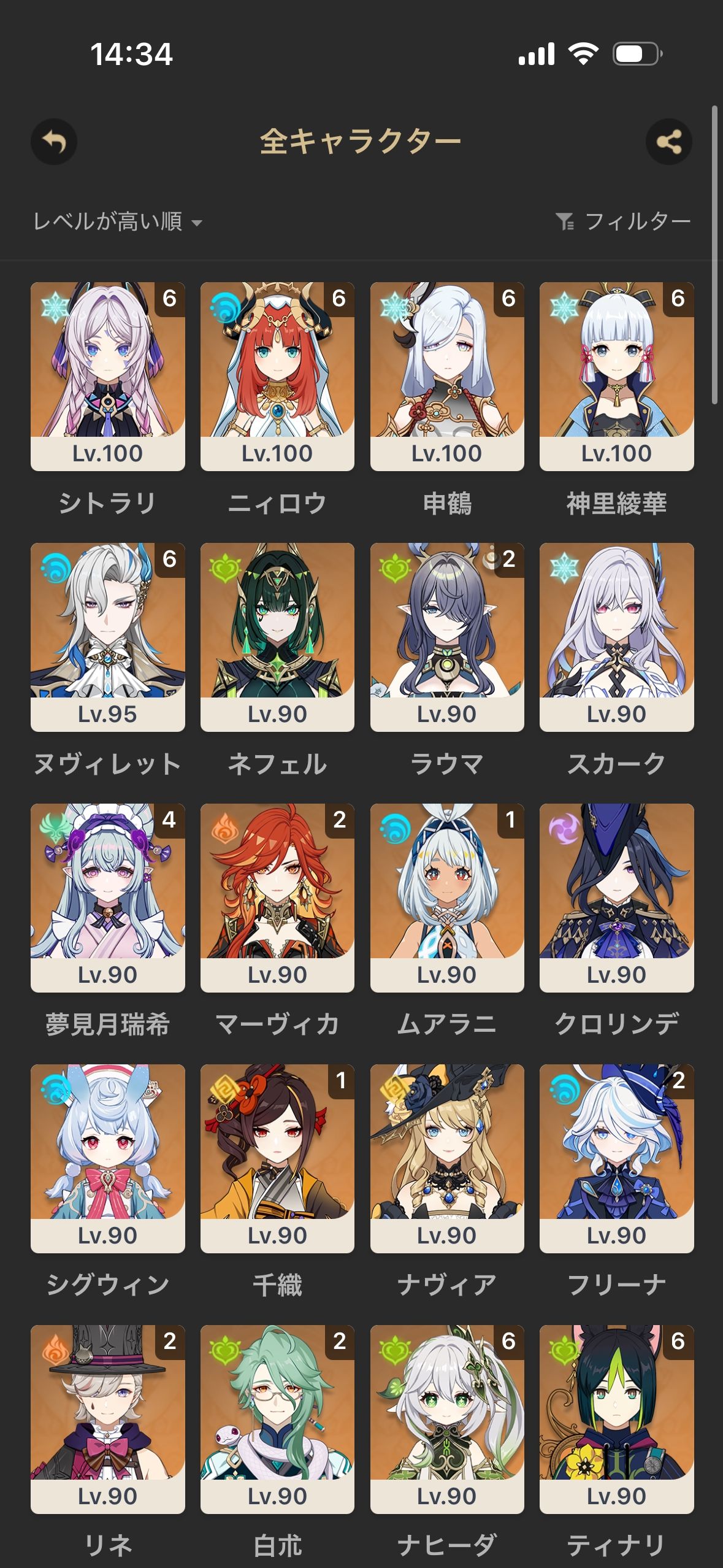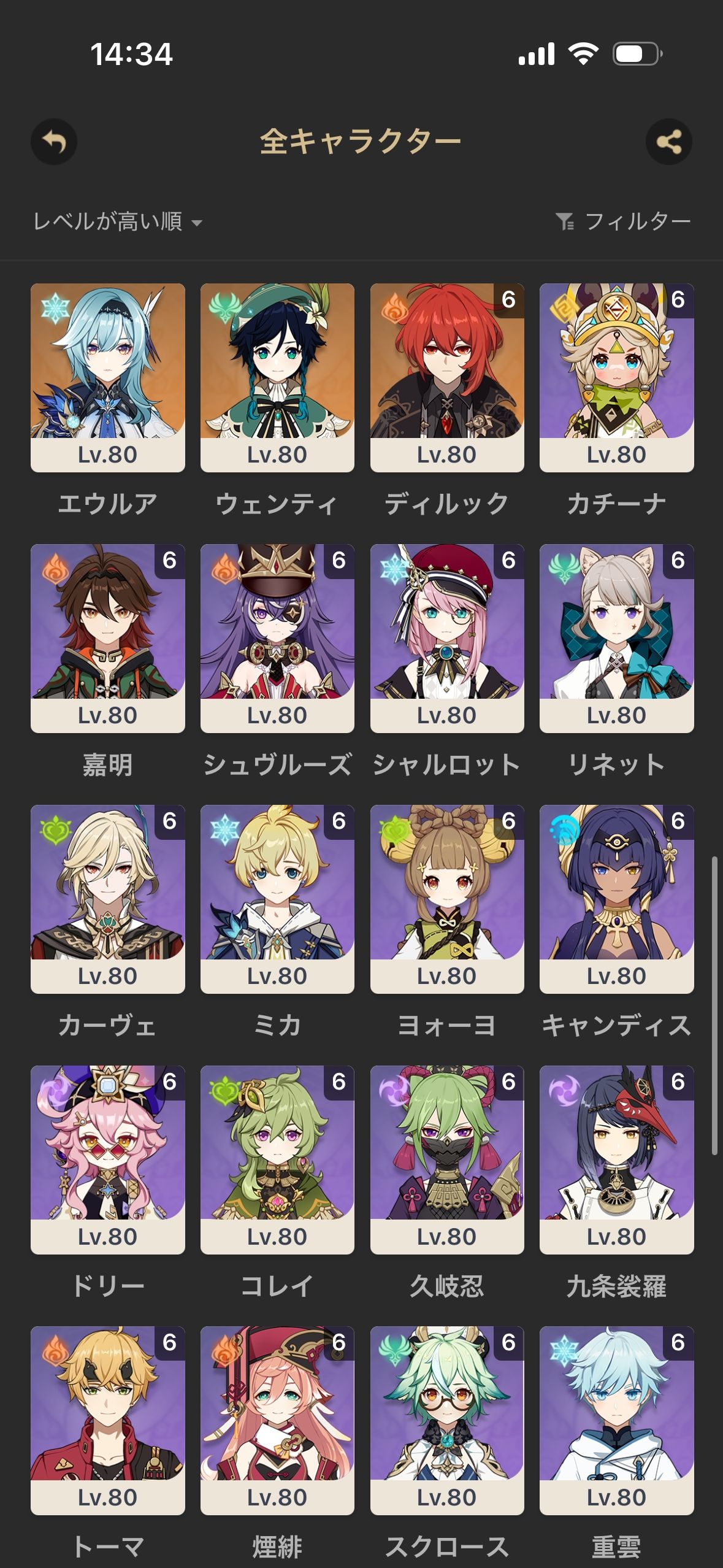 限定完凸は6体 ヌヴィレット、綾華、シトラリ、申鶴、ニィロウ、ナヒーダ