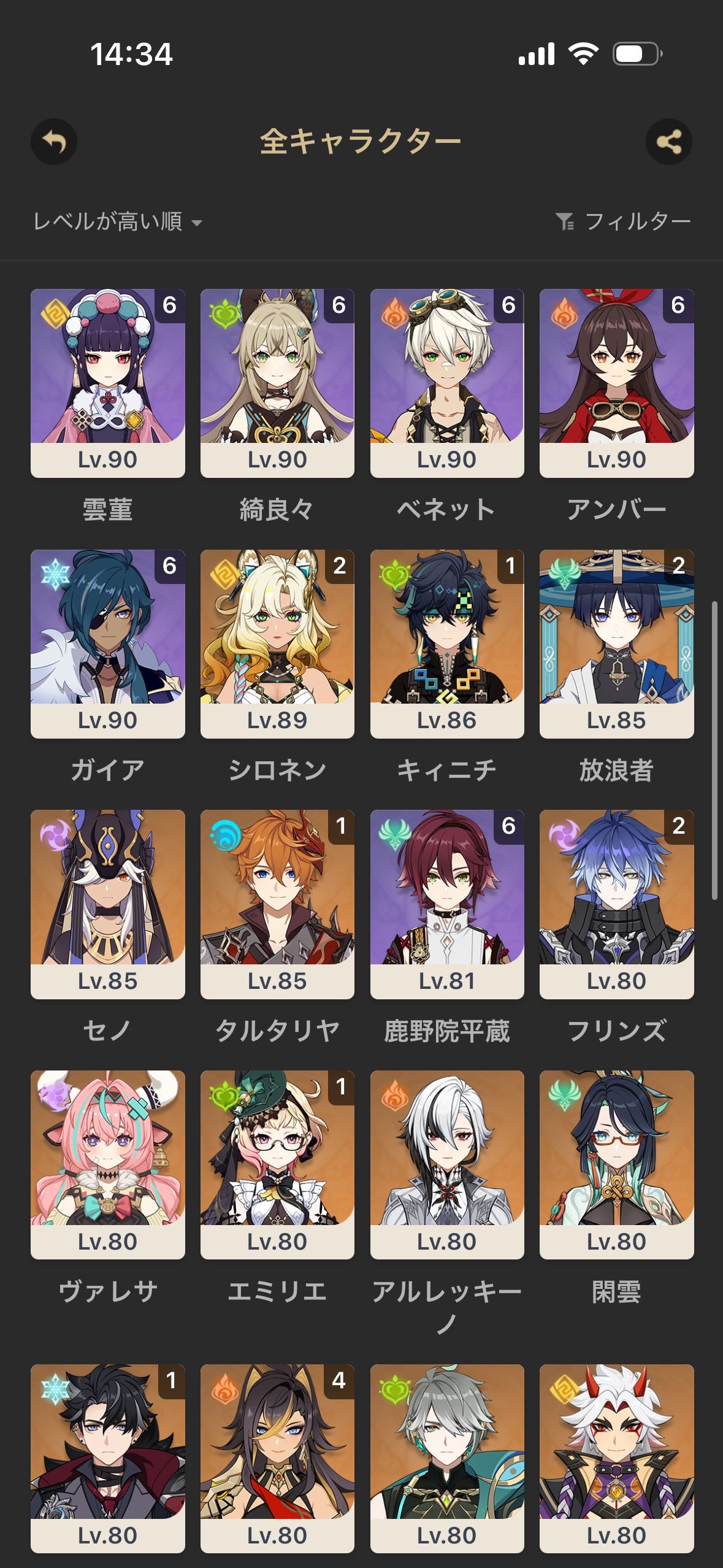 武器完凸もちらほらあります。限定キャラは餅武器とセットで引いてるので引いてある限定キャラは全員餅武器持ちです。