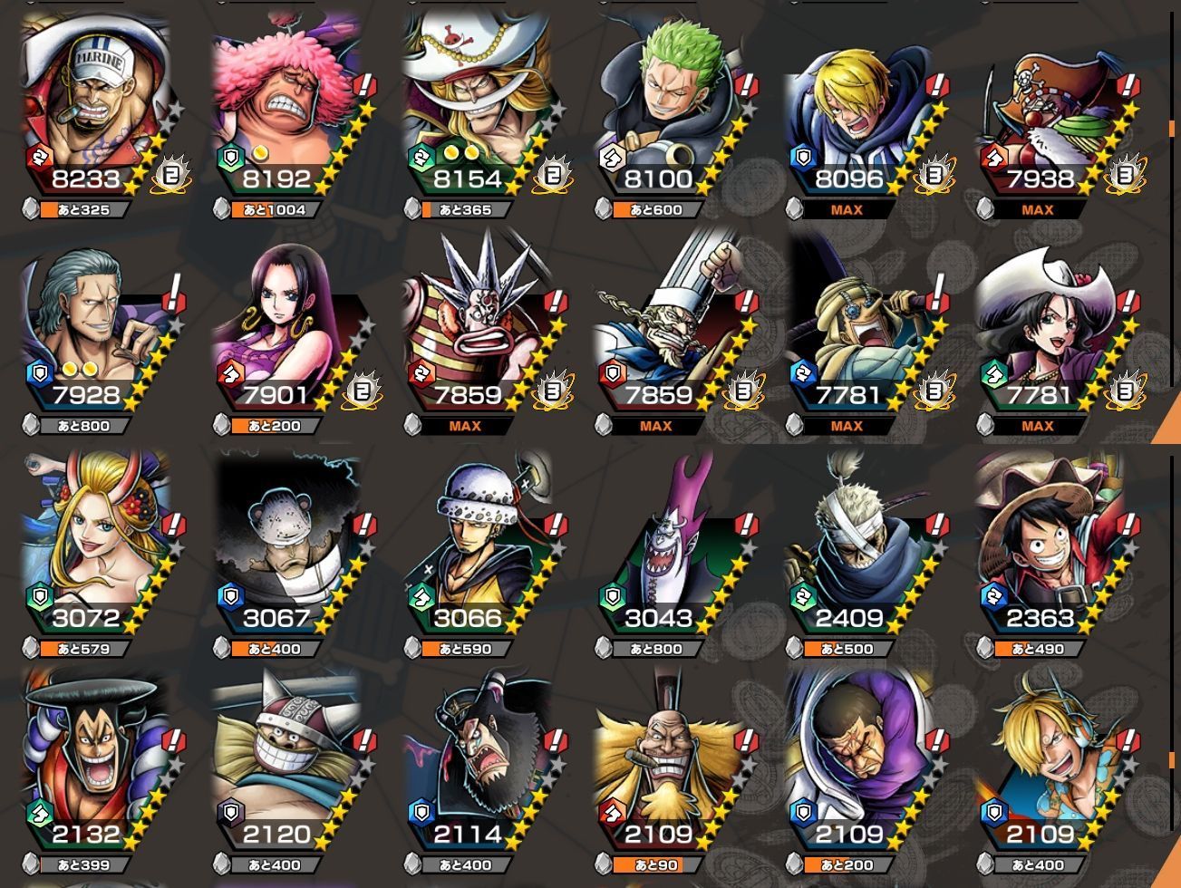 新ニカ S-スネーク 黒ロジャー 黒ガープ キッド&ロー 赤犬 夢ルフィ 緑ニカ ゾロ(閻魔) 光月おでん 花魁おリン