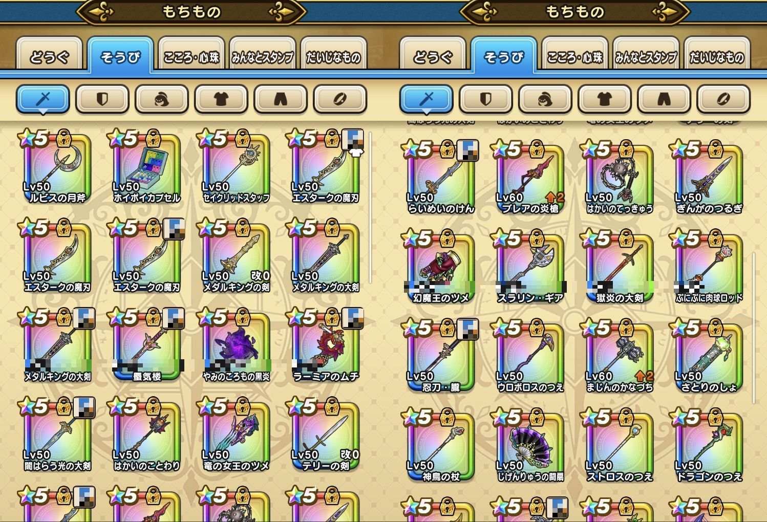 アカウント特定防止といった観点から、主な武具・こころを抜粋して記載させていただいております。