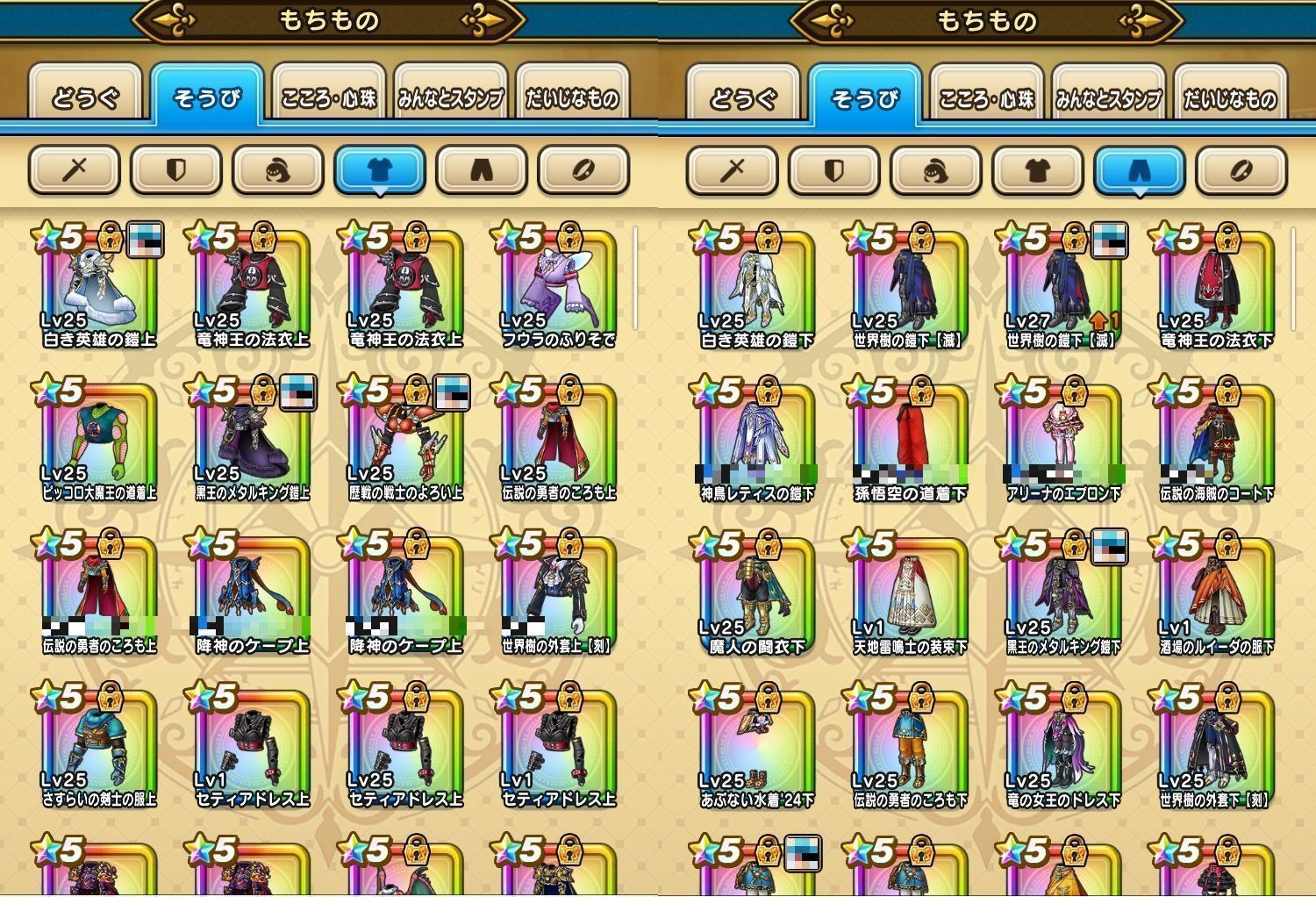 下記のようなそうびを所持しております。(一部抜粋)