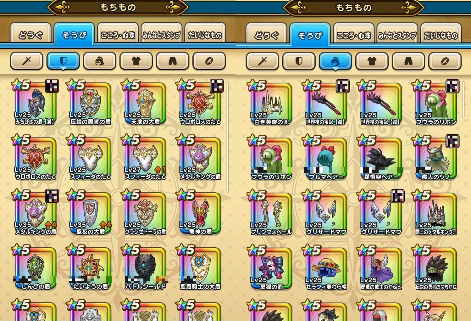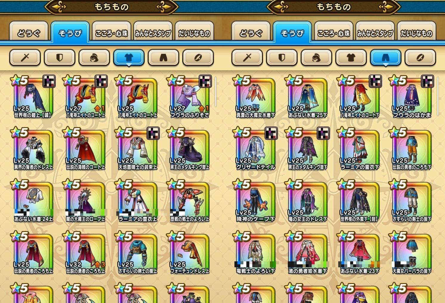下記のようなそうびを所持しております。(一部抜粋)