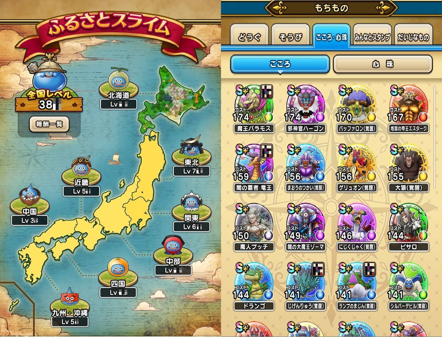 アカウント特定防止といった観点から、主な武具・こころを抜粋して記載させていただいております。