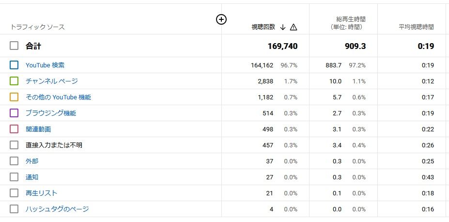 加えまして、運営開始後1本目の動画は、キーワード検索が主な流入元となりますが、この段階では再生回数が低いです。