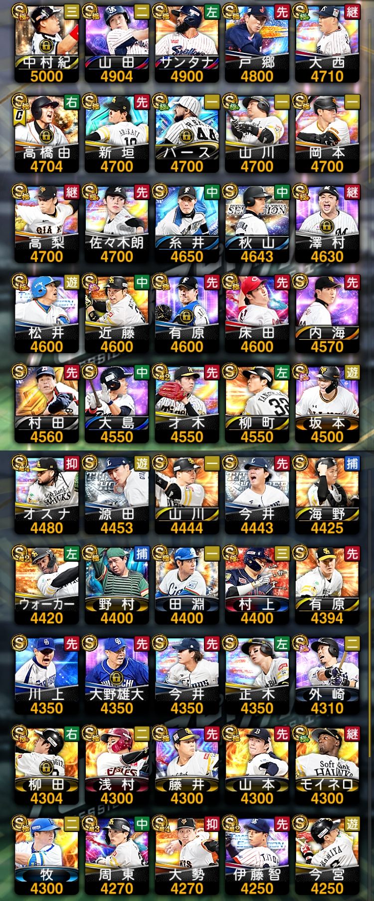アカウント特定防止といった観点から、主な選手を抜粋して記載させていただいております。