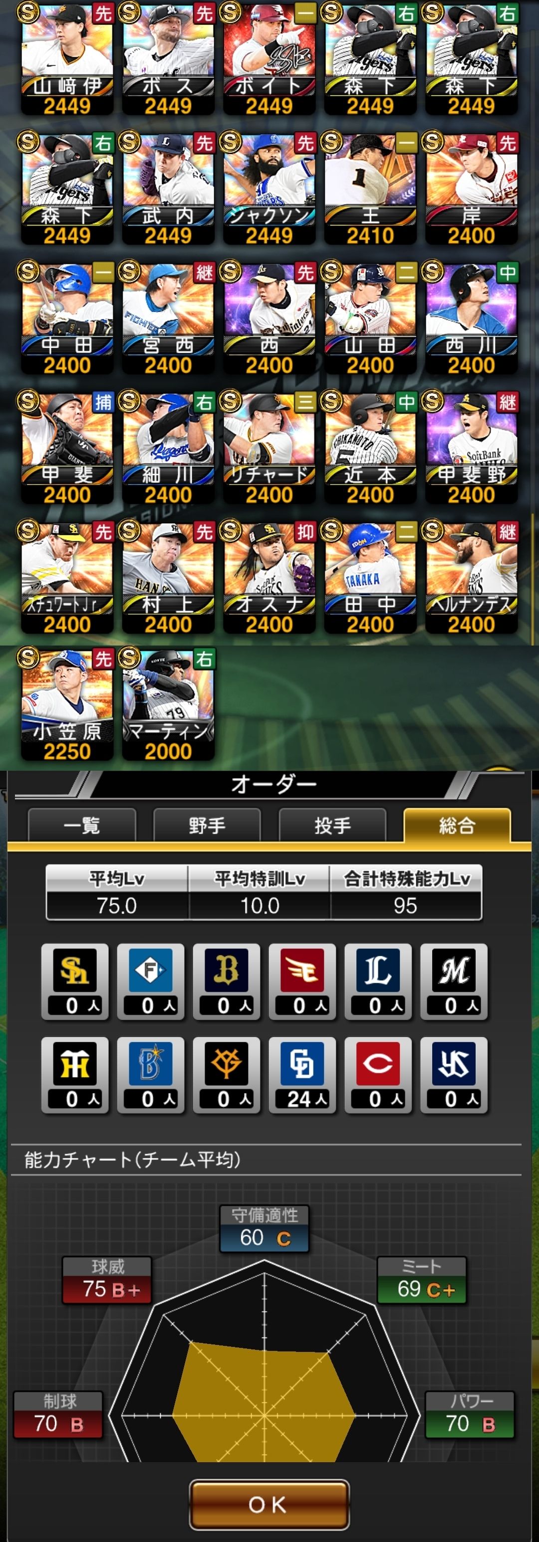 アカウント特定防止といった観点から、主な選手を抜粋して記載させていただいております。