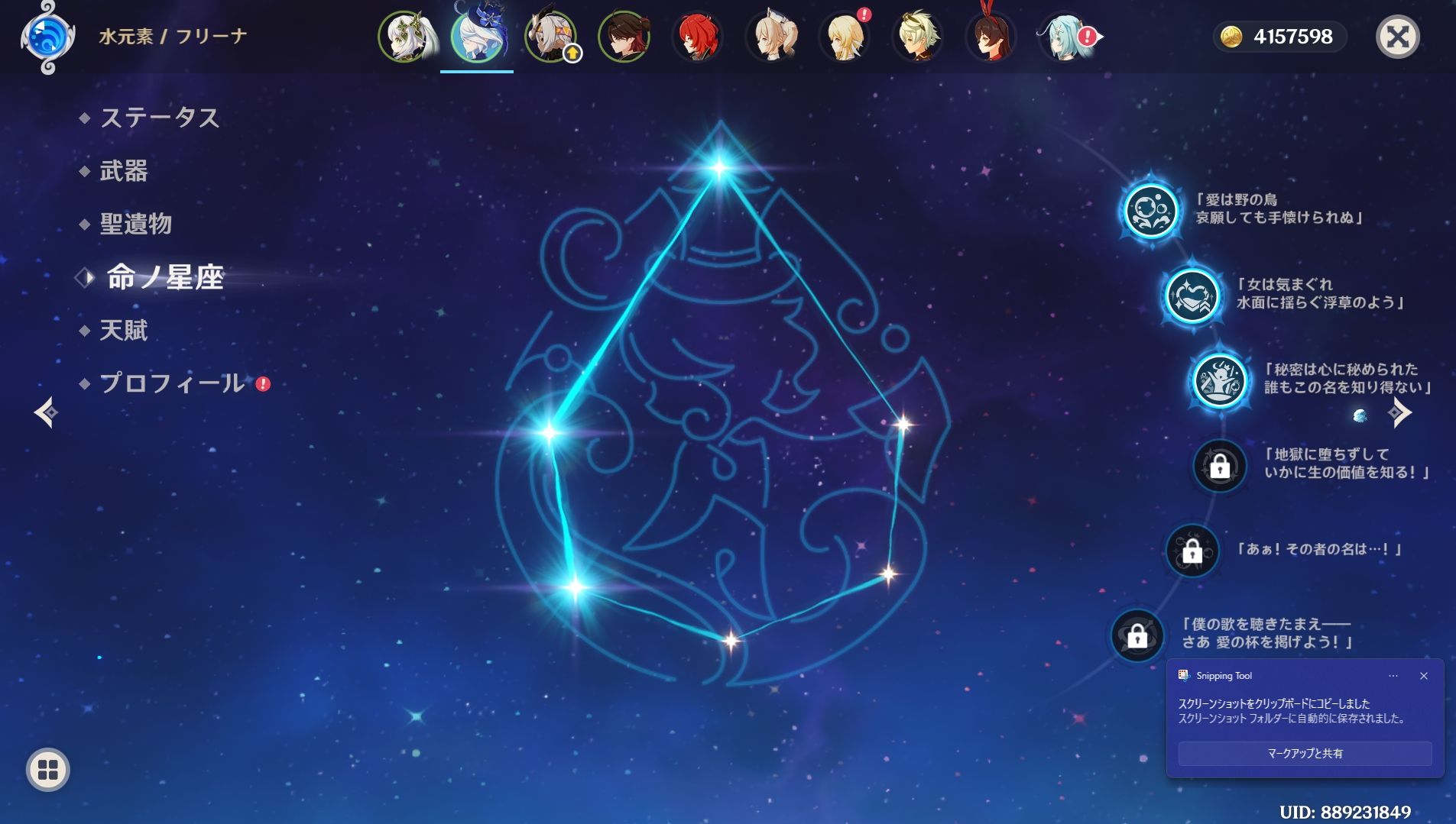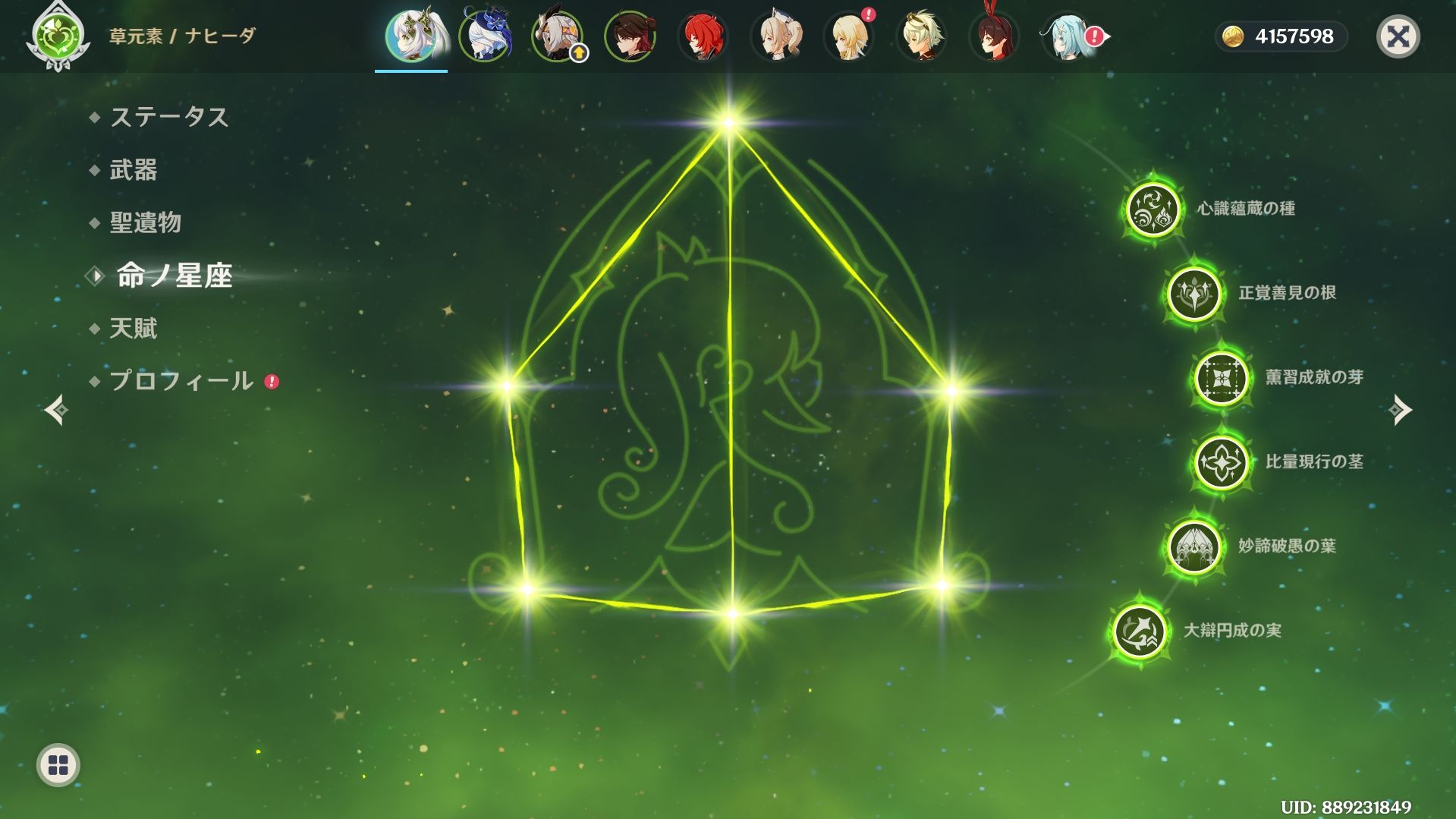 ナヒーダ完凸、フリーナ3凸その他完凸キャラいます