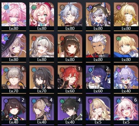 下記のようなキャラクター・光円錐を所持しております。(一部抜粋)