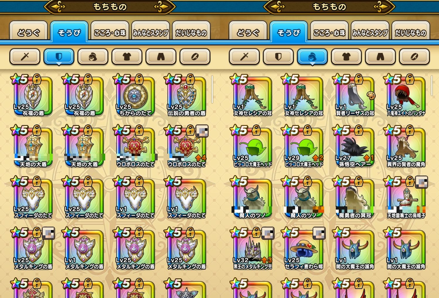 アカウント特定防止といった観点から、主な武具・こころを抜粋して記載させていただいております。