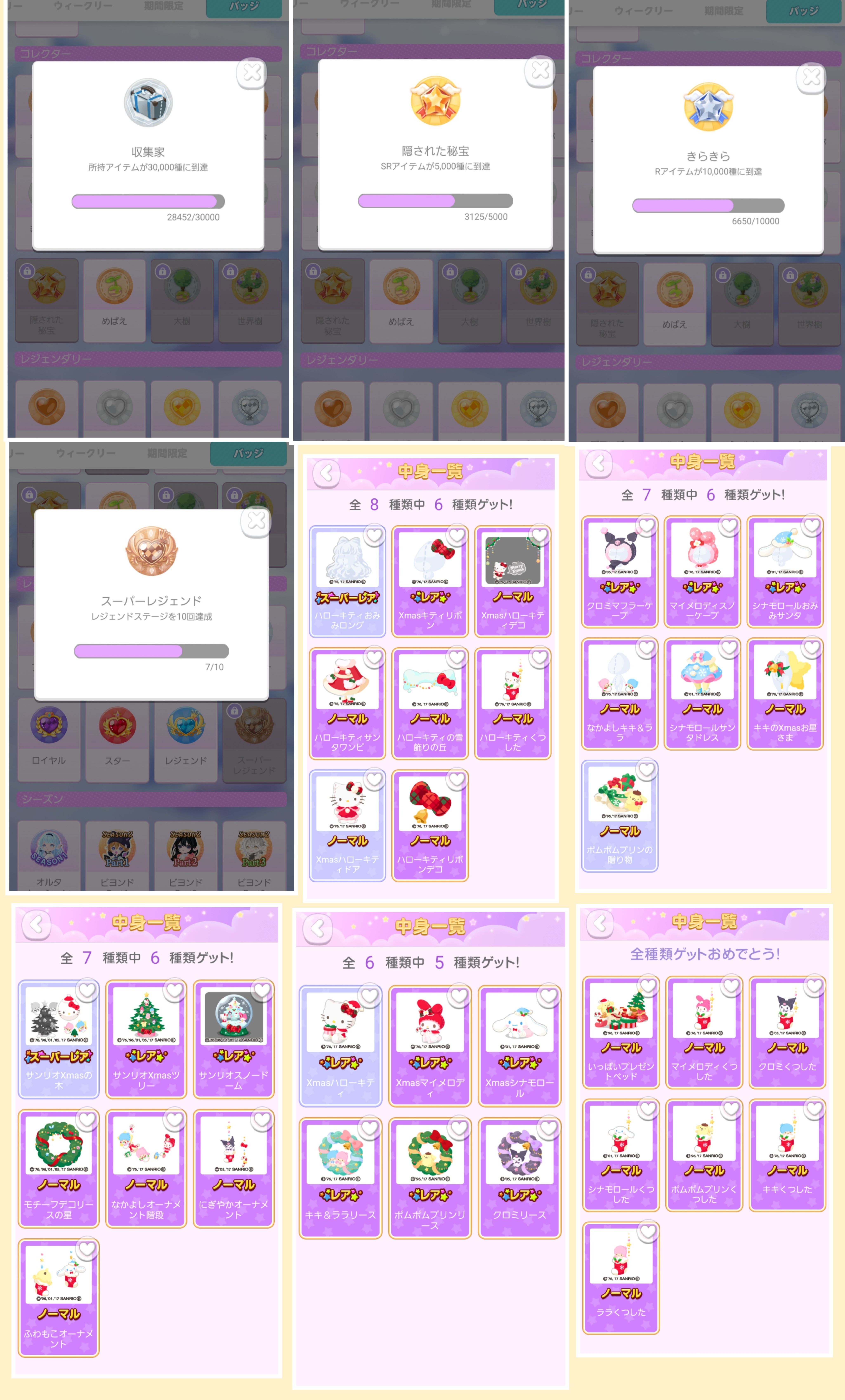 ミッキー、ミニー、マイメロ、リトルツインスターズ(ダブり有り)、サンリオクリスマス所持