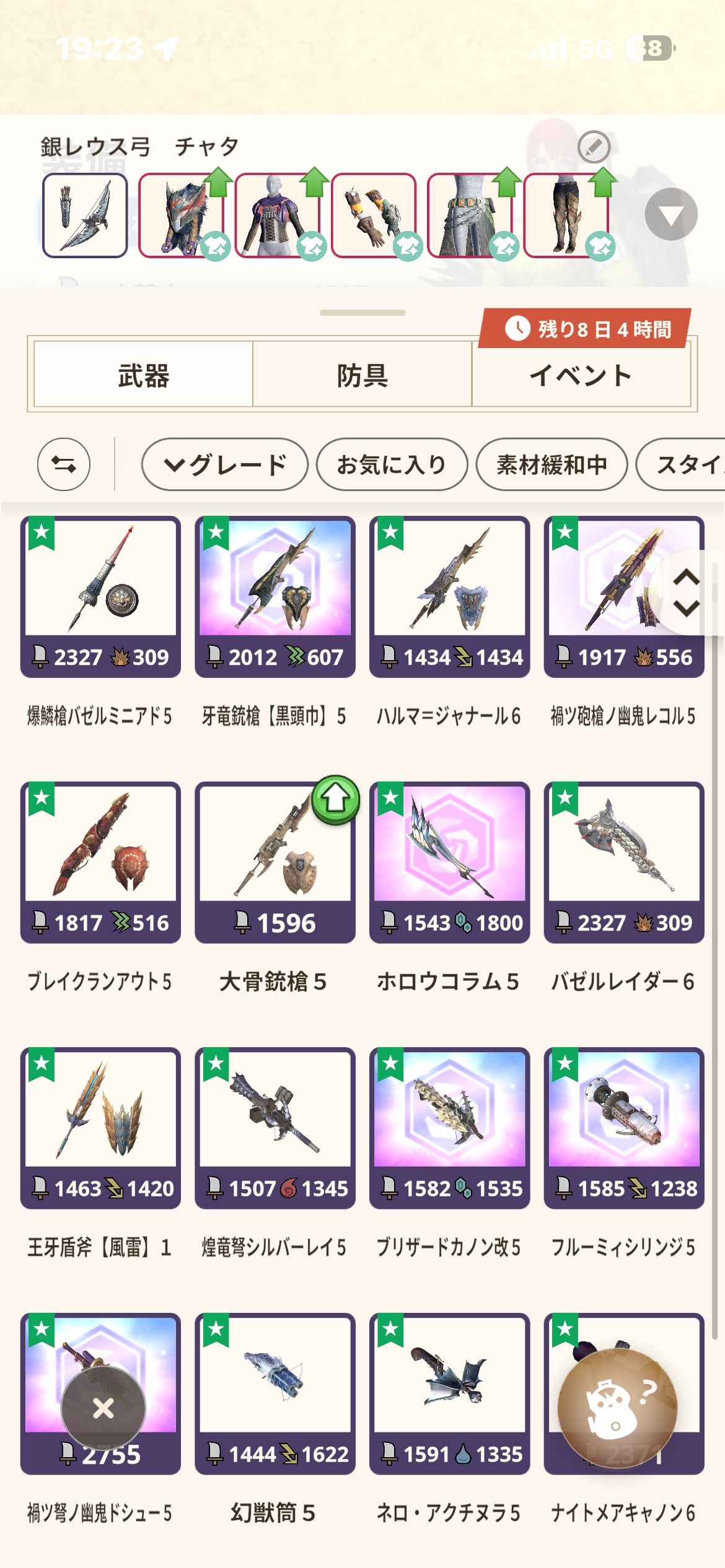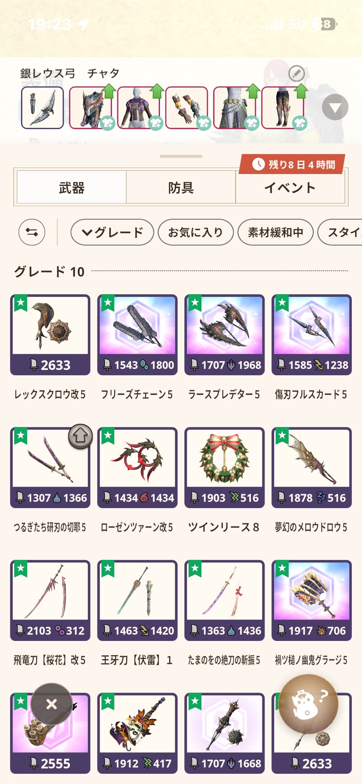 防具 使用頻度が高い属性防具、汎用防具ほぼグレード8-5です。