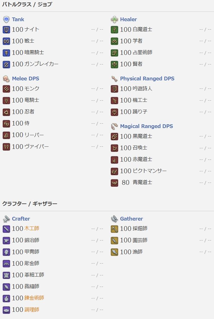 【レベル】戦闘ジョブ・ギャザクラ100(リーパージョブクエが未達)