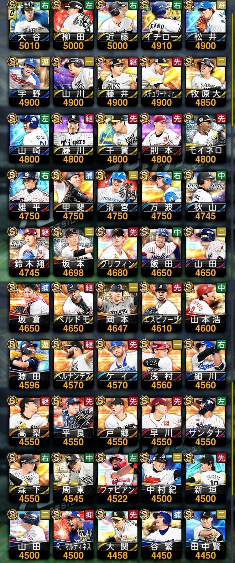 マルティネス イチロー エスピノーザ 大谷翔平(野手) 大谷翔平(投手) 岡本和真 近藤健介 坂本勇人 中村紀洋 細川成也