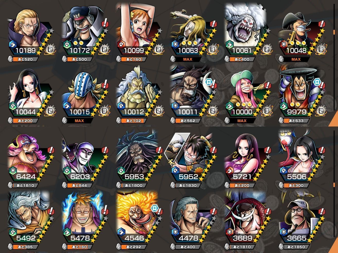 黄猿 サボ クザン S-スネーク 黒ロジャー 白ひげ カイドウ キッド&ロー ビッグ・マム シャンクス(RED) シャンクス(神避) 緑ニカ ヤマト 光月おでん 花魁おリン