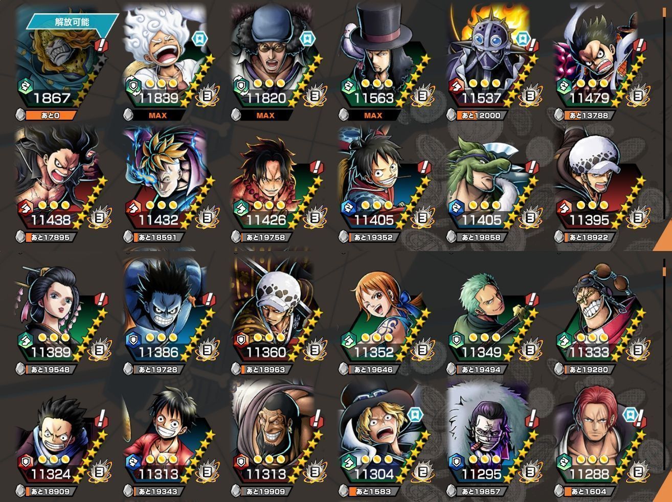 アカウント特定防止といった観点から主なキャラクターを抜粋して掲載しております。