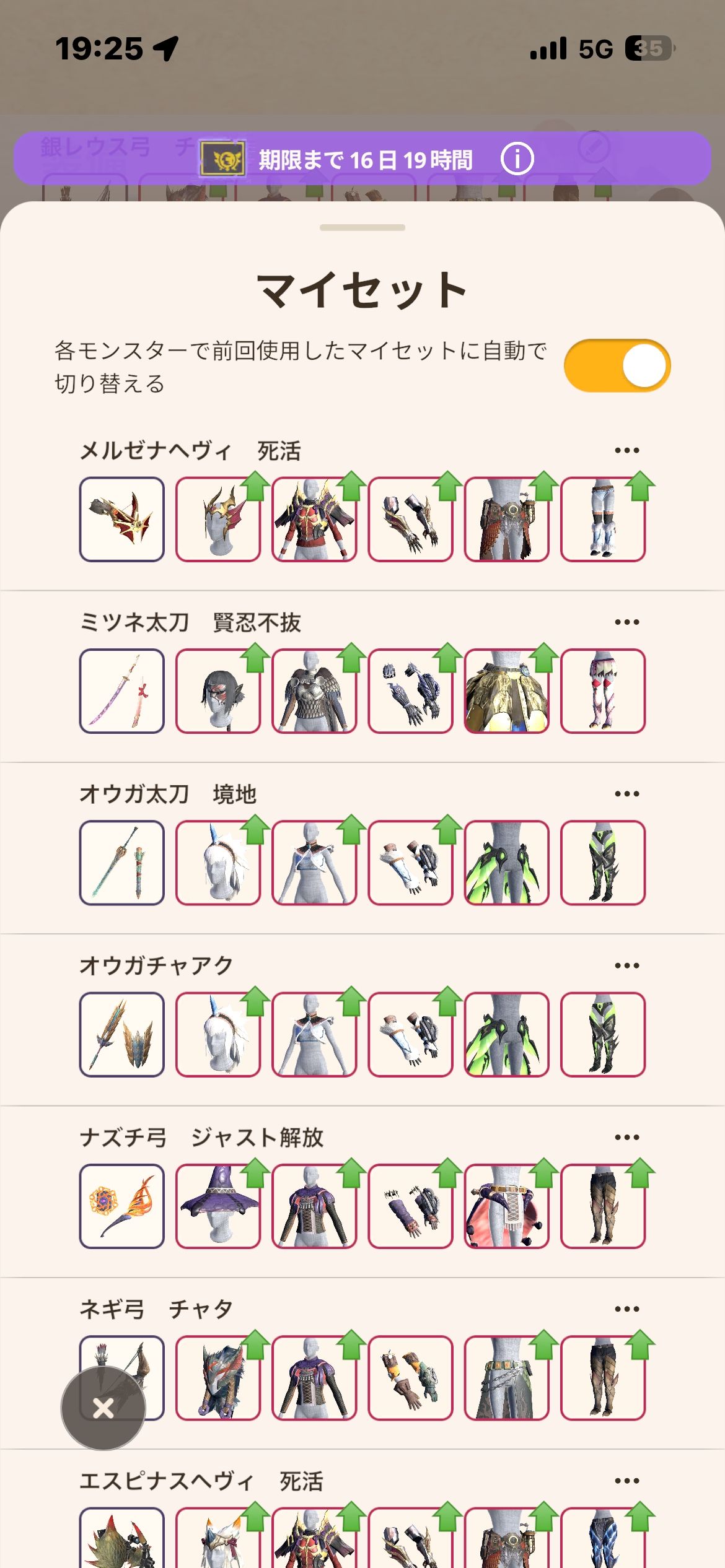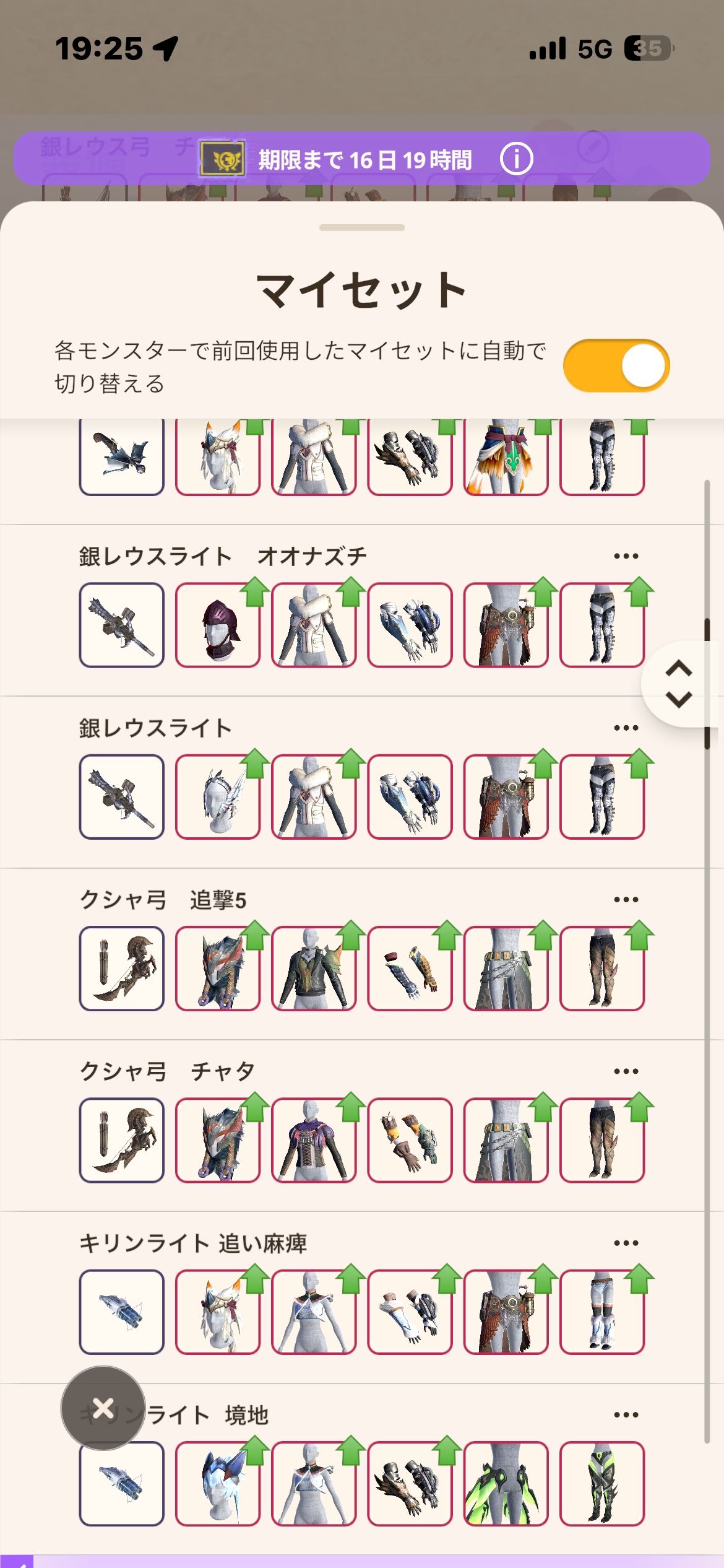 防具 使用頻度が高い属性防具、汎用防具ほぼグレード8-5です。
