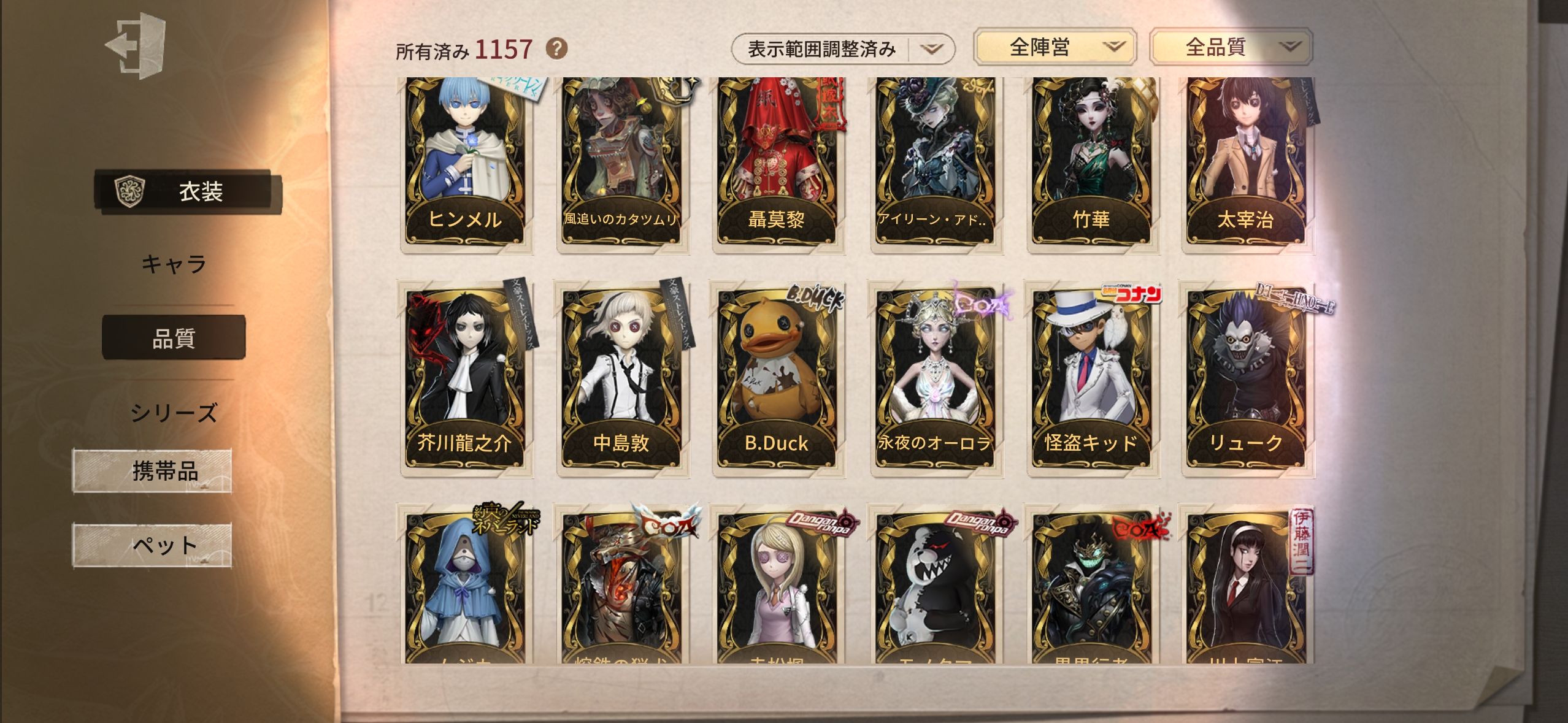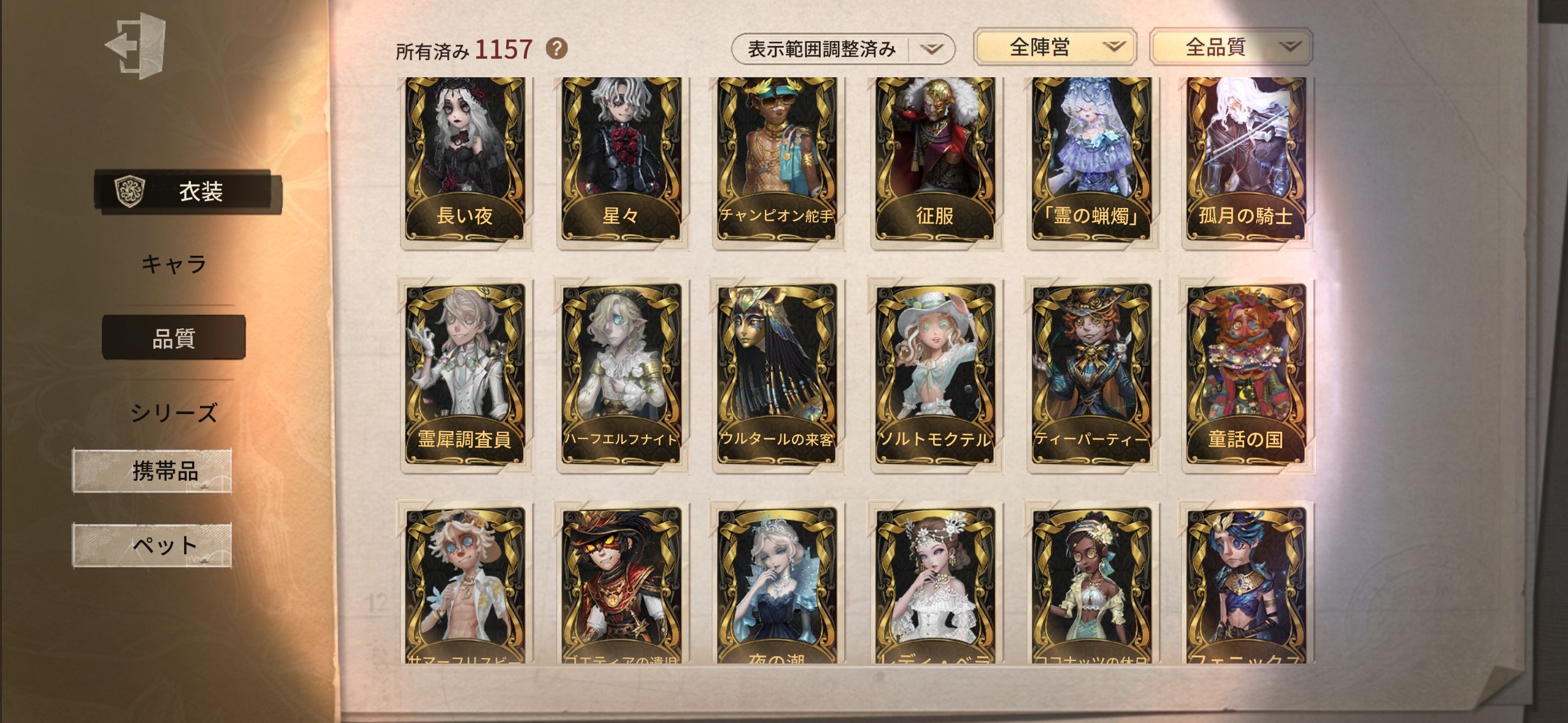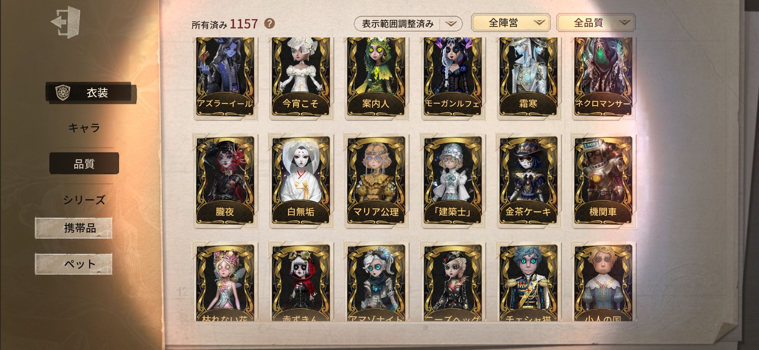 居館はベイカー街221B、霧の山荘、沈黙の宮殿を所持しております。家具もそこそこ所持しております。