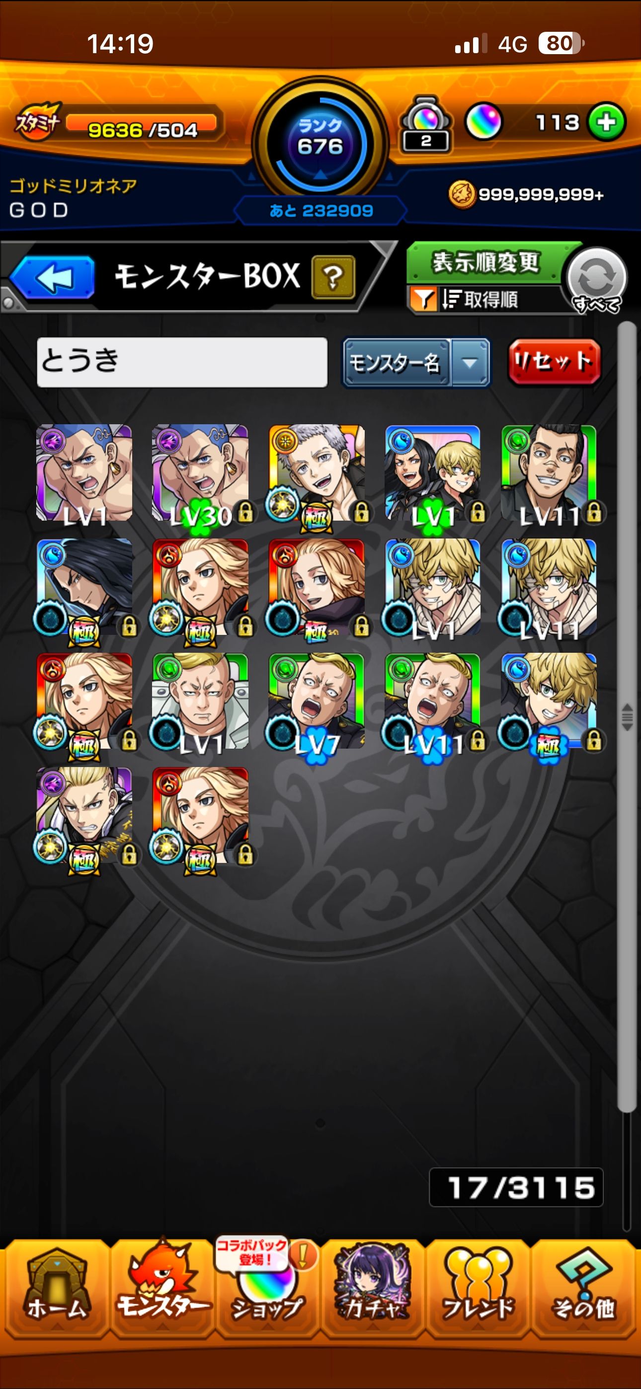 アカウントレベル:676