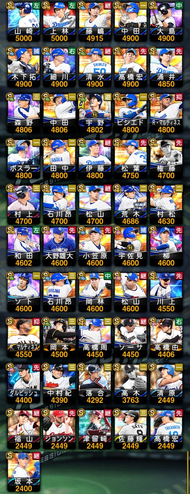 下記のような選手を所持しております。(一部抜粋)