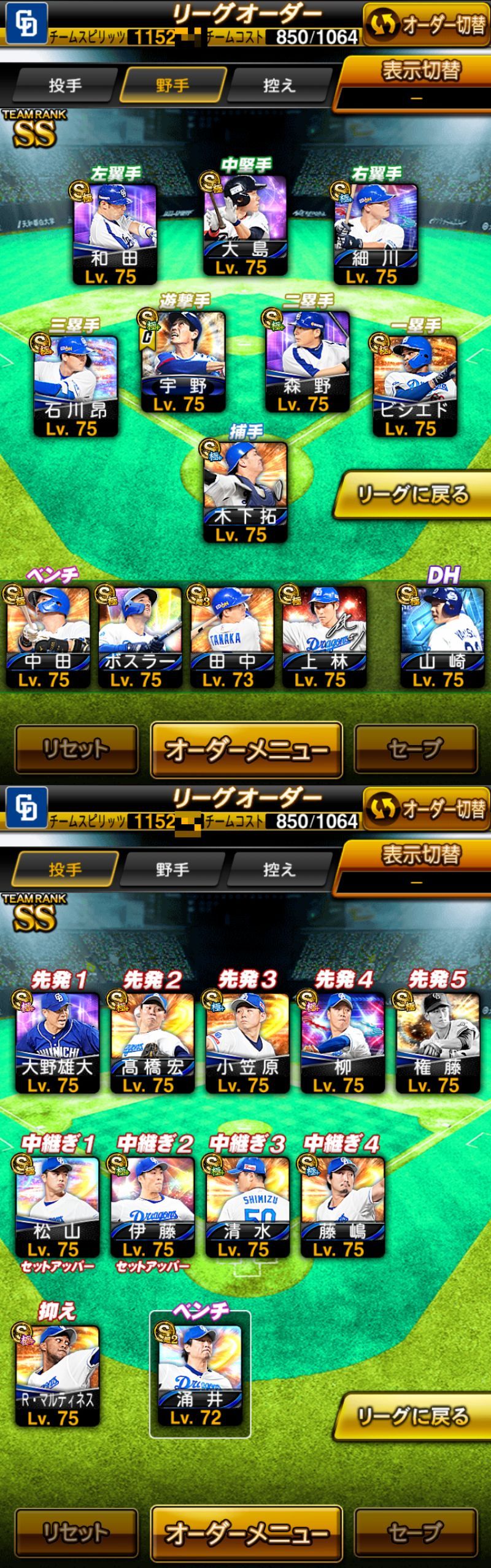 ※プレイヤーレベルなども一部ぼかして記載しています。