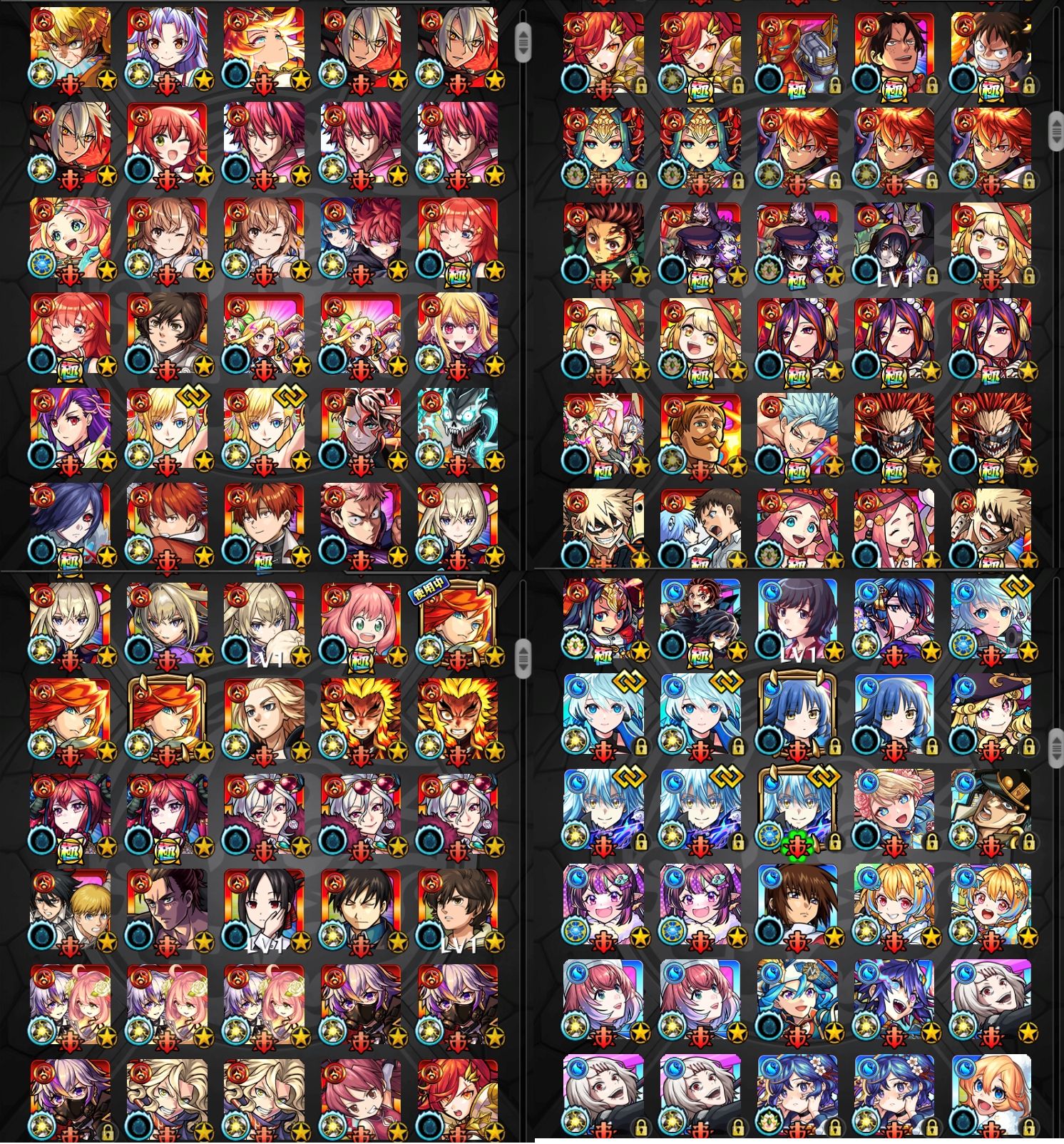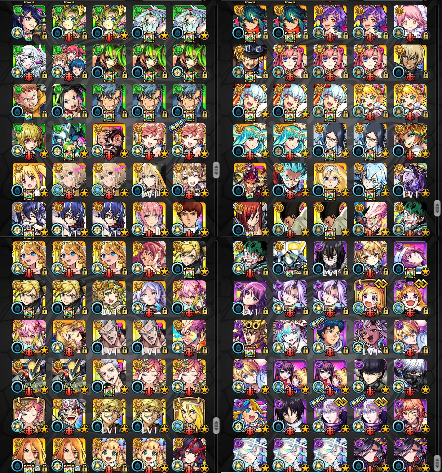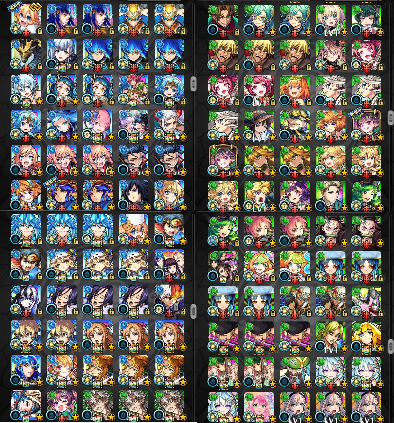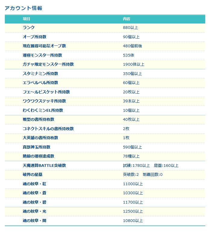 アカウント特定防止といった観点から、主なモンスターを抜粋して記載させていただいております。