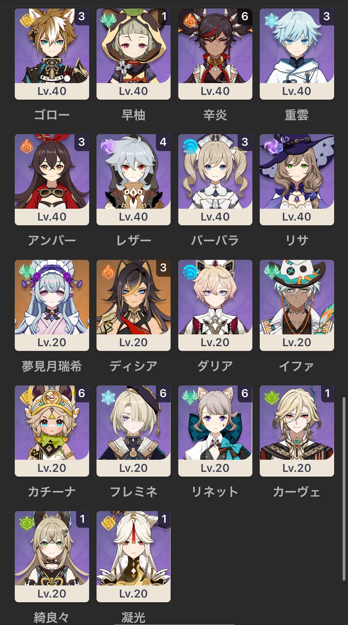 他にも恒常星5キャラ、限定星5武器、完凸星4キャラ多数有り (詳しくは画像にてご確認ください)