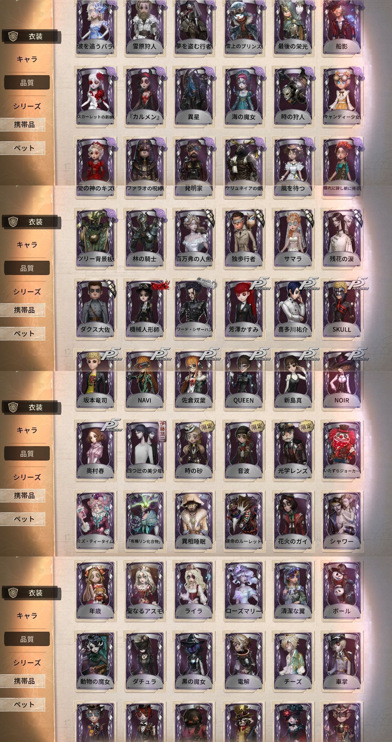 アカウント特定防止といった観点から、主な衣装を抜粋して記載させていただいております。